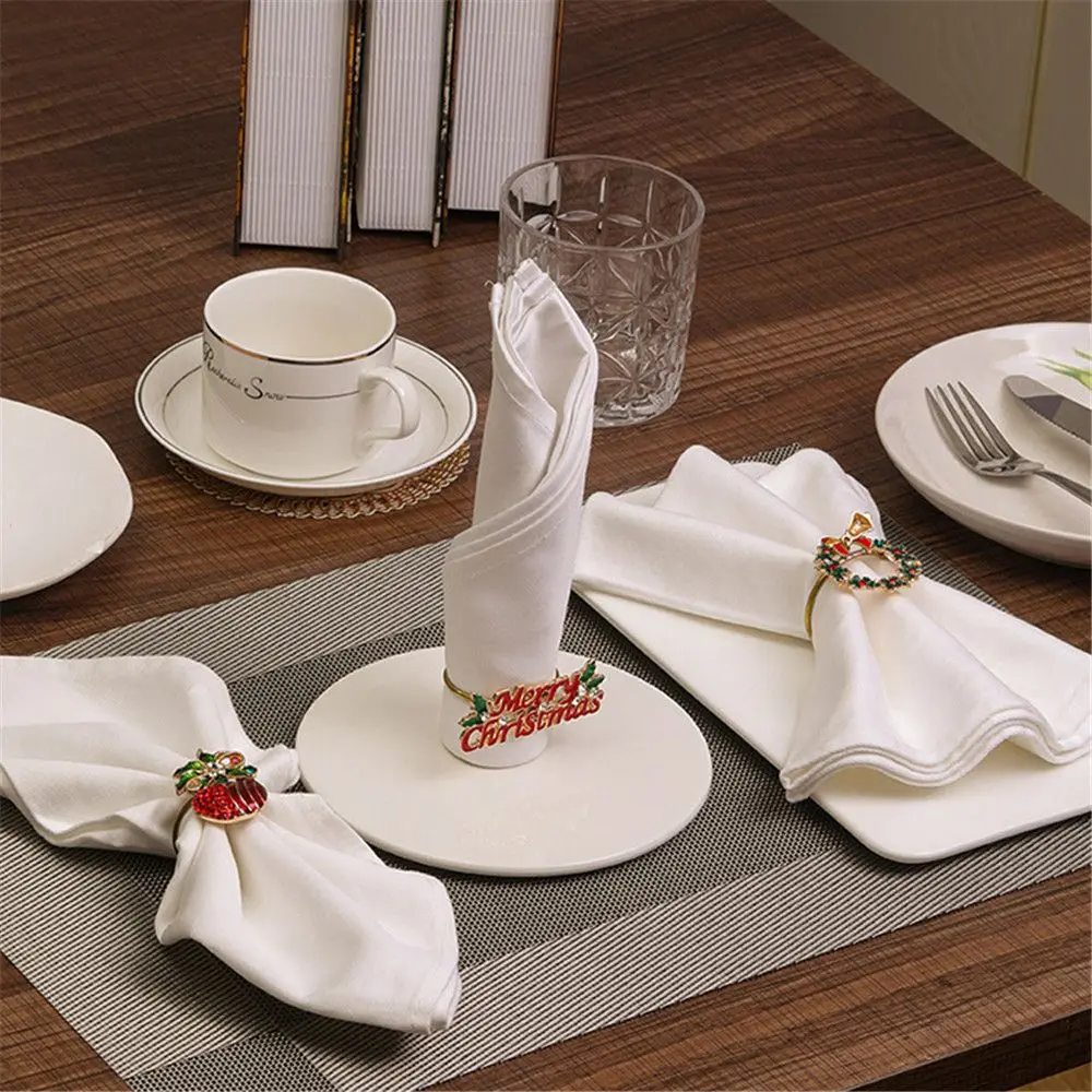 Кольцо для салфеток на стол, Рождественское украшение для стола, лось, Санта-Клаус, цветок, венок, рождественское кольцо для салфеток, свадебные принадлежности, украшение