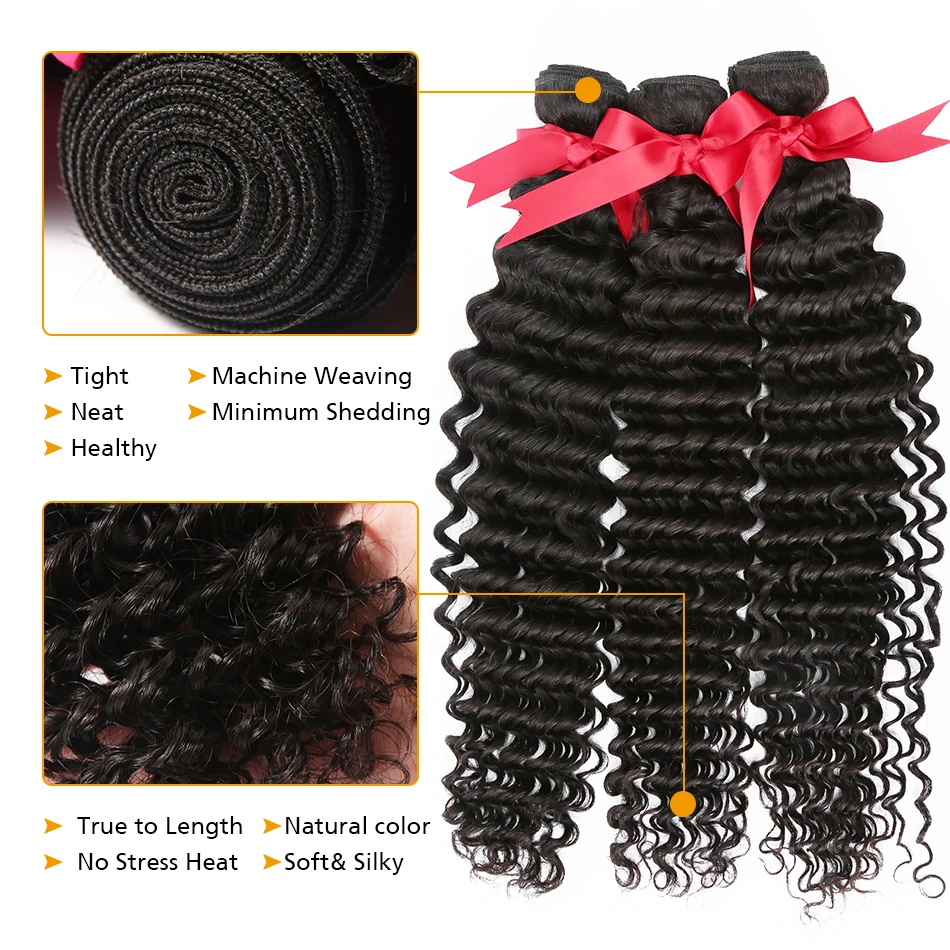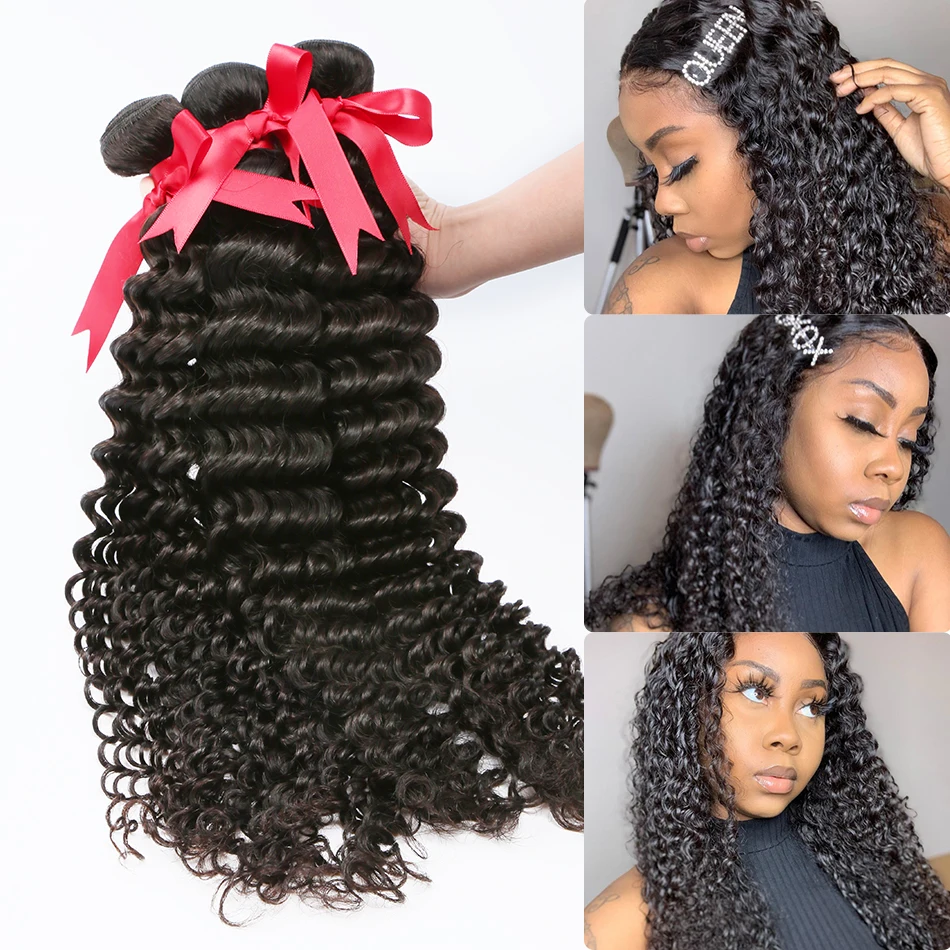 Wigirl 28 30 32 34 40 дюймов бразильские волосы плетение 3 4 пряди с 13x4 кружевной фронтальной Remy глубокая волна 100% человеческие волосы