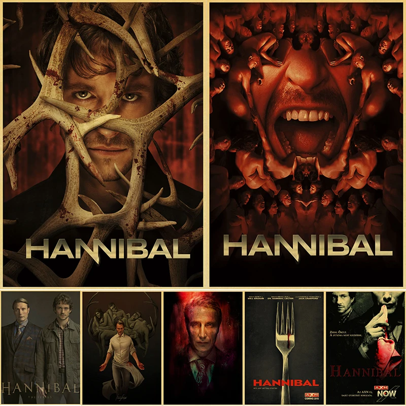 Ганнибал, ретро постер из крафт-бумаги, Mads Mikkelsen, Звездный классический ужас, наклейка для ТВ-сериала, необычный декор