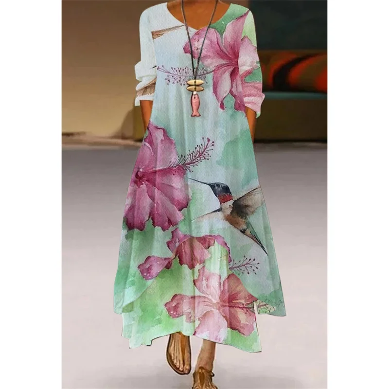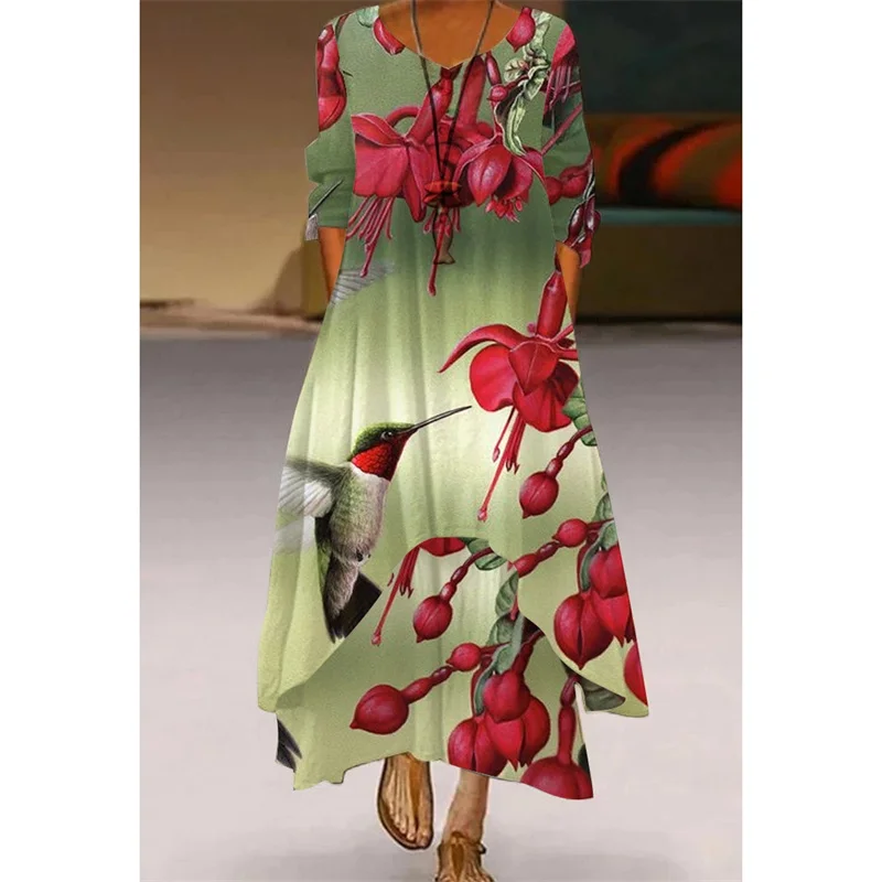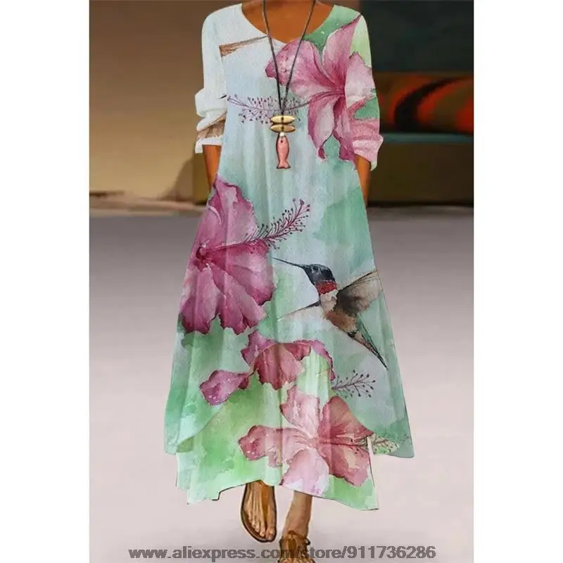 Женское длинное платье-макси с цветочным принтом, средней длины