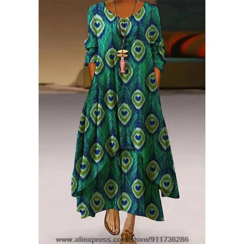 Женское свободное платье с длинным рукавом, длинное пляжное платье ...
