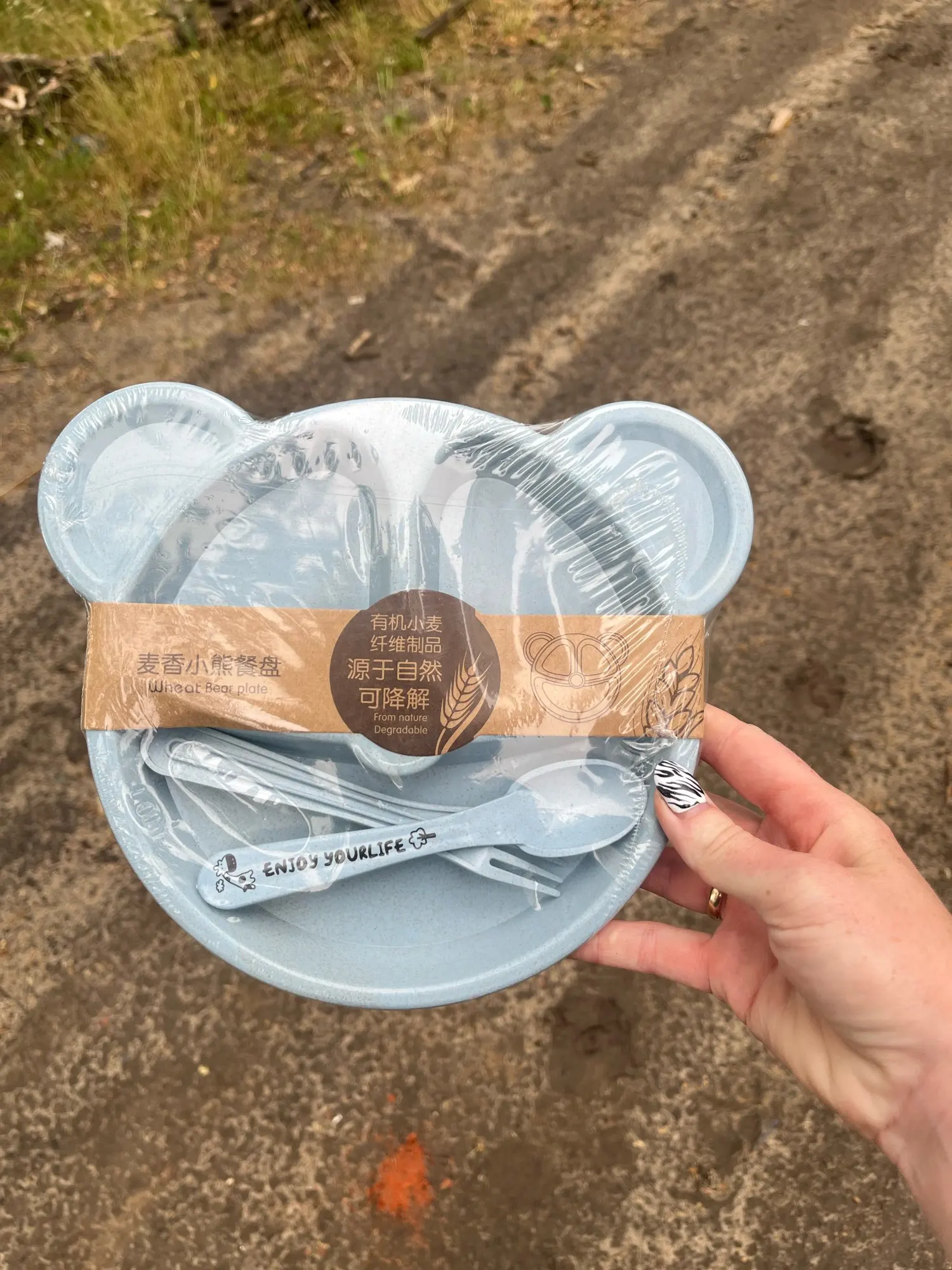 Пластиковые тарелочки с ложкой и вилкой. Купила до роста доллара, тарелки придётся ставить на силиконовый коврик или что-то придумывать чтобы не скользили