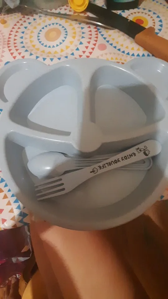 Классная тарелочка, очень милая, в наборе вилка и ложка, за свои деньги топ, доставка очень быстрая в Курск