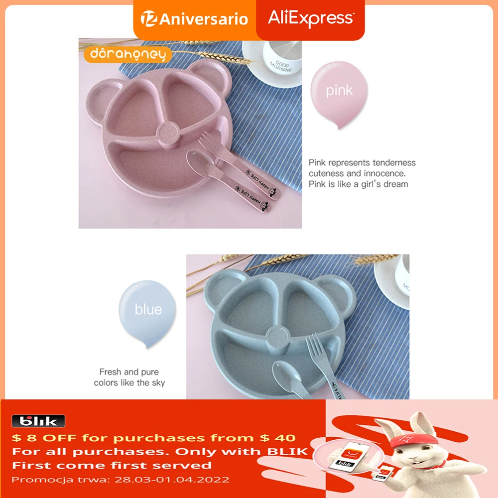 Детская обеденная тарелка с мультяшным медведем, набор для кормления, миска + ложка + вилка, набор столовой посуды для детей