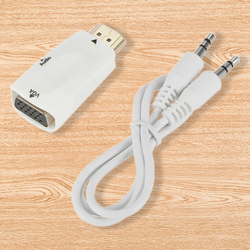 Адаптер преобразователя HDMI-VGA, золотистая фотография с аудиовыходом-белый