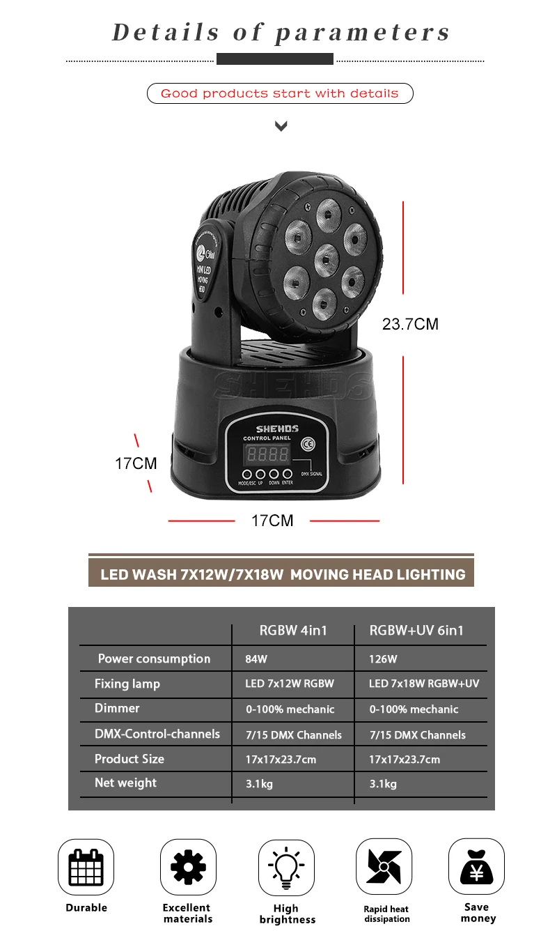 Фиксирующая лампа: светодиодный 7 × 12 Вт RGBW