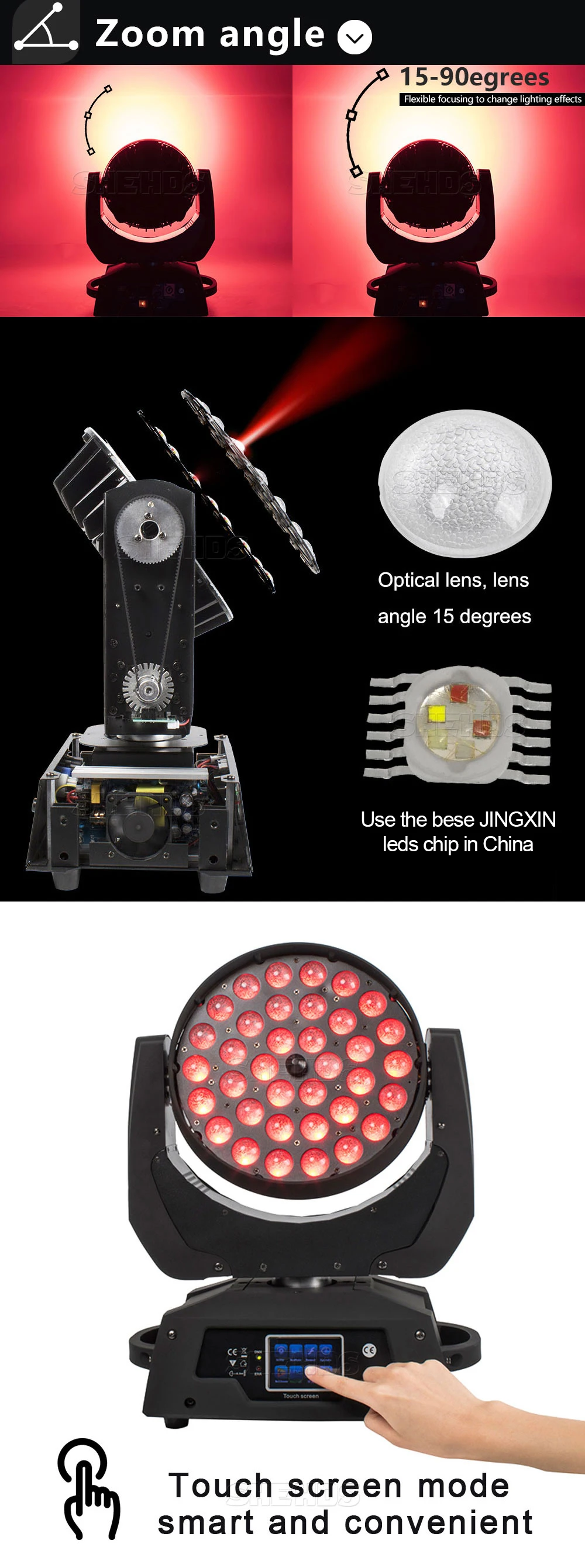 Светодиодный светильник с зумом для мытья, лампа с подвижной головкой, 36x18 Вт36x12 Вт, RGBWA + UV DMX, для дискотеки, диджея, вечеринки, музыки, концерта, бара, сценическое оборудование