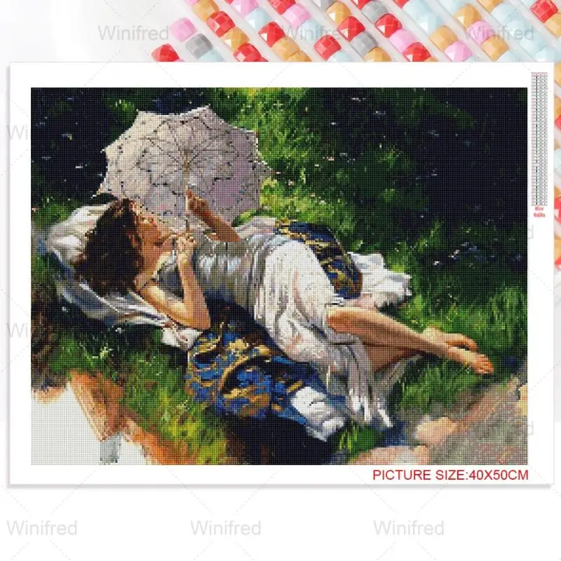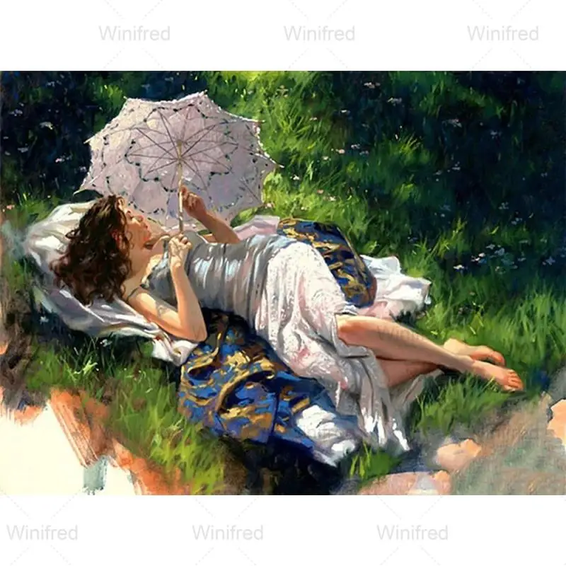 Алмазная 5D Вышивка сделай сам, картина с изображением спящей на траве, масляная живопись, портрет девушки, вышивка крестиком, украшение для стен