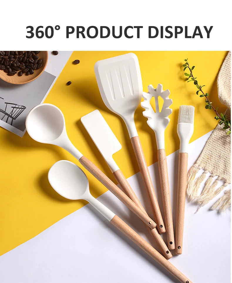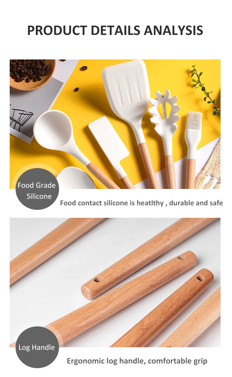 Кухонная безопасная силиконовая кухонная утварь, антипригарная лопатка, ложка, венчики для кухни, удобная деревянная ручка, легкая в чистке
