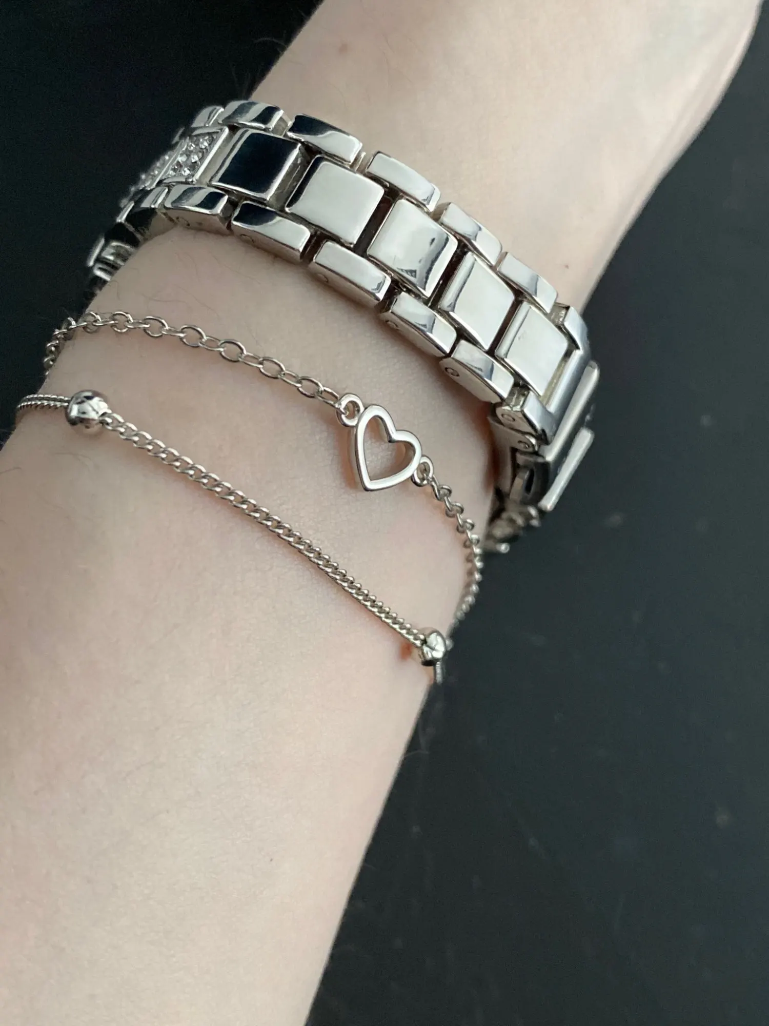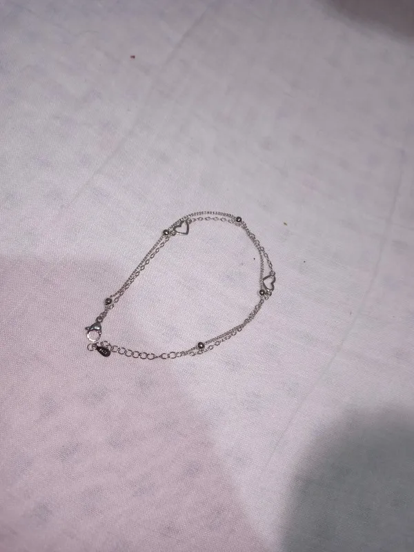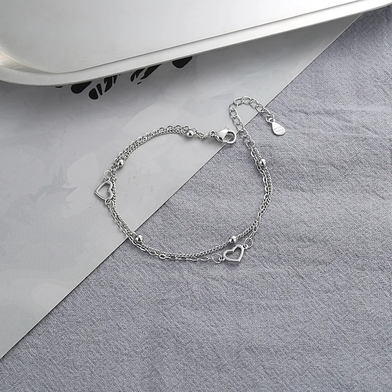 Женский двухслойный браслет из серебра 925 пробы с сердечками