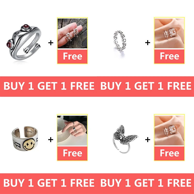 Серебряный Цвет Лягушка Змея кольца для мужчин и женщин Панк гот Пара Крест регулируемые золотые смайлик Бабочка Кольца Набор 2021 тренд ювелирные изделия