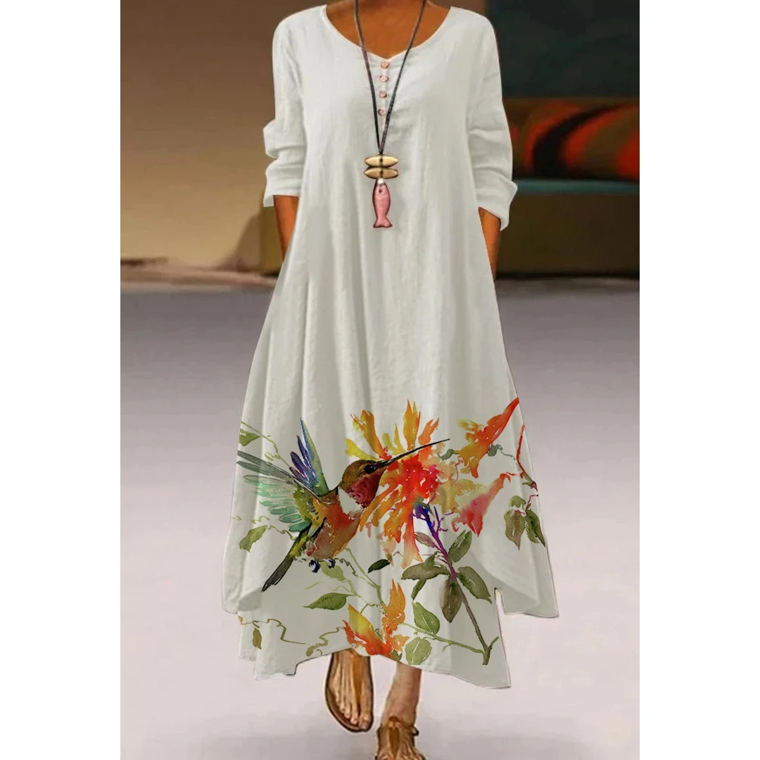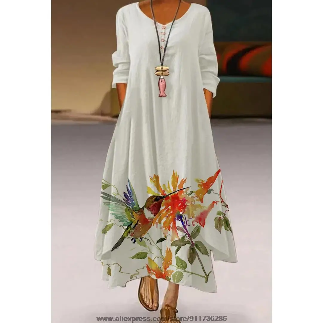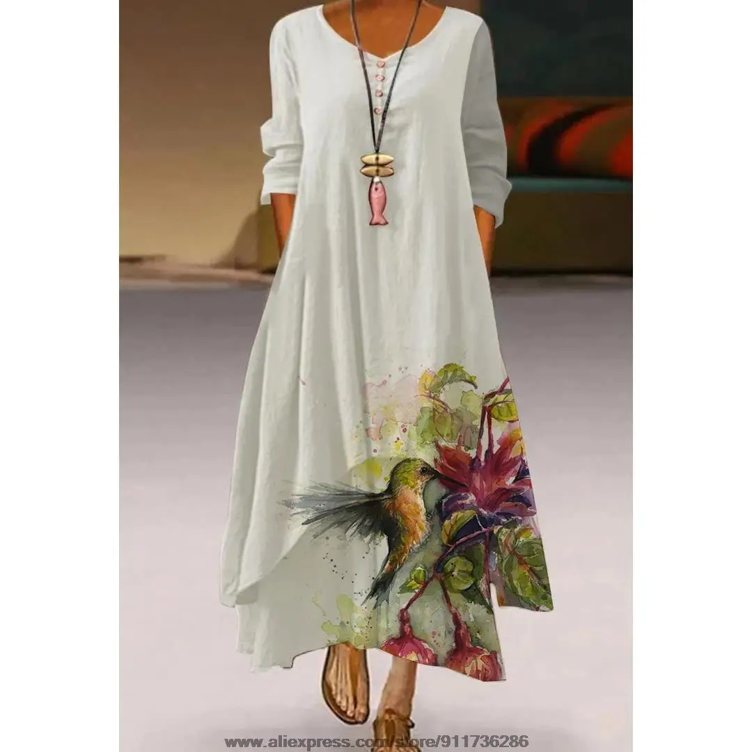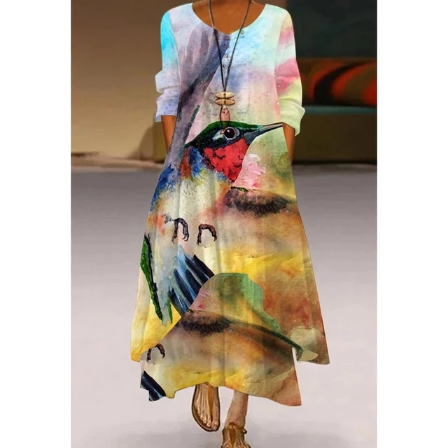 Длинное платье-макси в стиле Харадзюку с принтом природных птиц, же...
