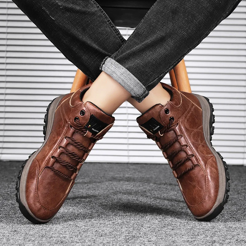Мужские кожаные ботинки, модные кроссовки, зимние теплые мужские бо...