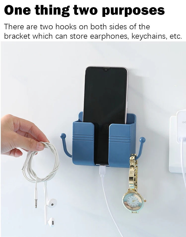 1. Высококачественный АБС-материал, огнестойкий и прочный, прочный и прочный, хорошая ручка. Прост в использовании и хранении.2. Многофункциональное использование, не только кронштейн для зарядки мобильного телефона, но и безопасное место для всех видов дистанционного управления.3. Есть два небольших крючка с обеих сторон кронштейна, которые могут держать небольшие предметы, такие как кабель для передачи данных, наушники и брелок.