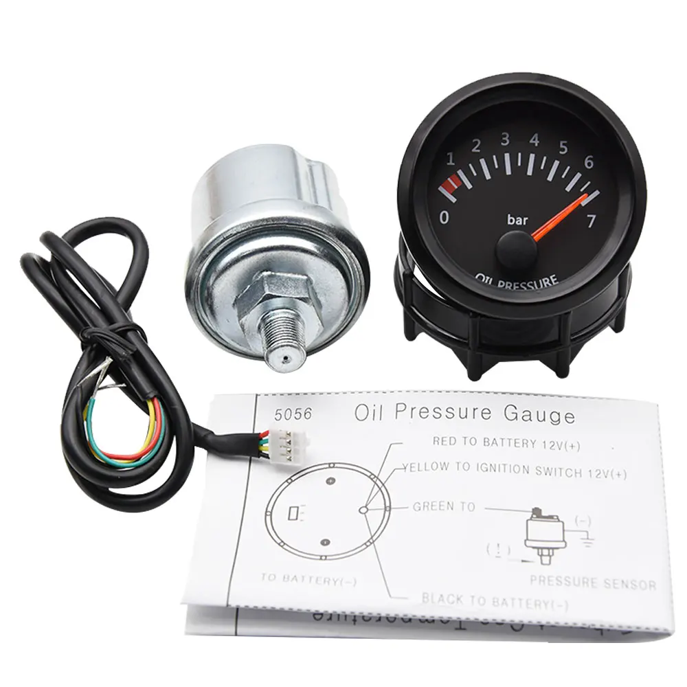 52 мм Масляный Пресс ure Универсальный 12 в 0-7 бар автомобильный масляный пресс индикатор светодиодный измеритель с датчиком для гонок Калибр черный держатель