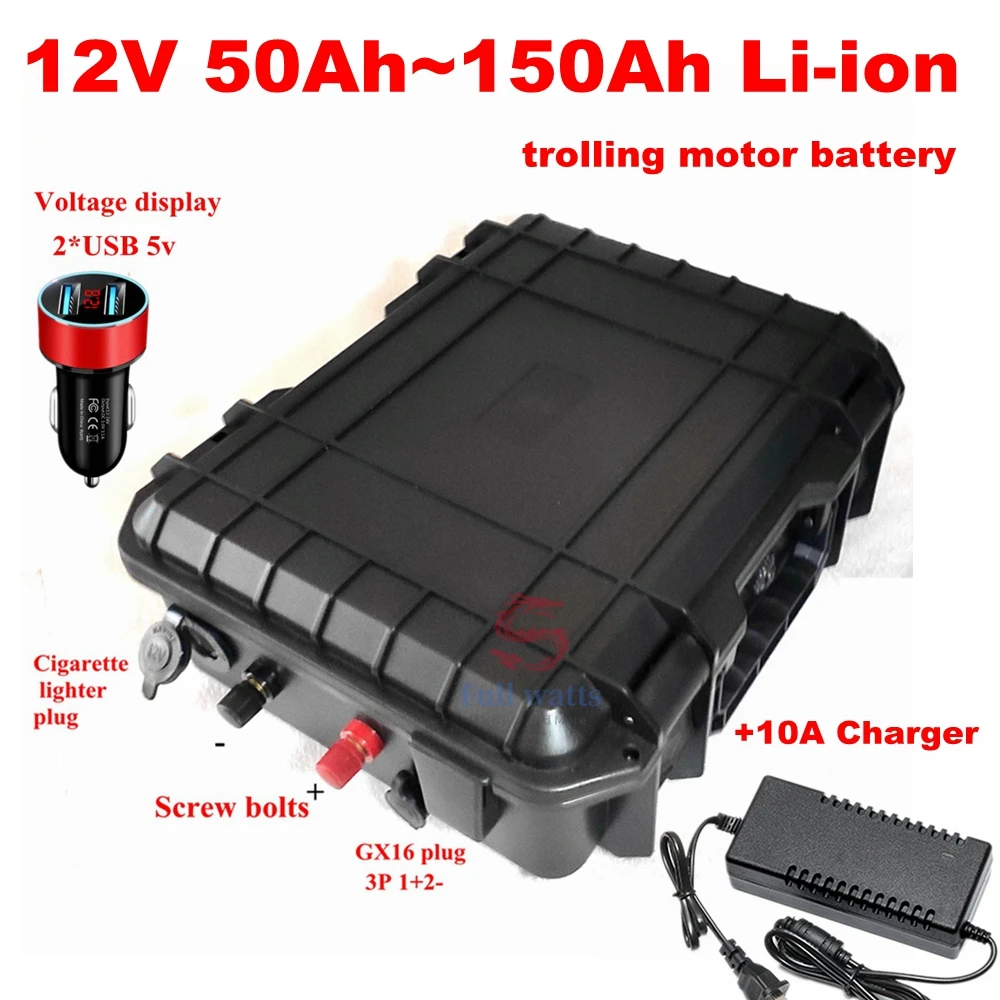 Водонепроницаемая литий-ионная батарея 12 В, 50 ач, 60 Ач, 80 ач, 120 Ач, 150 Ач для троллинга, хранилище солнечной энергии для моторной лодки + зарядное устройство 10 А