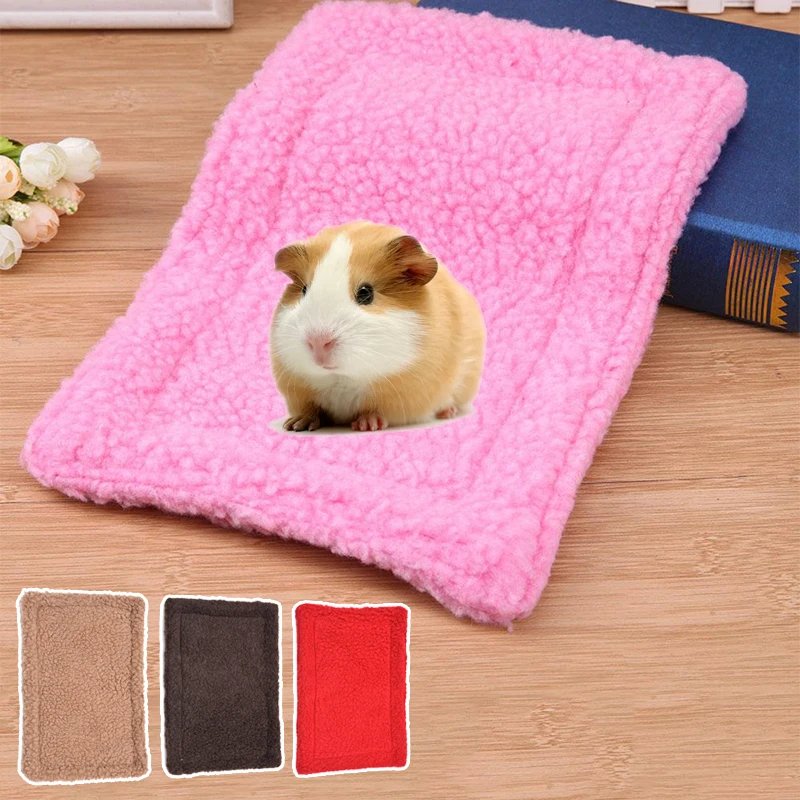 Двухсторонний теплый коврик для маленьких домашних животных, плюшевый коврик для хомяка, коврик для гнезда морской свинки, легко носить с собой, Прямоугольный Коврик для кроличьей кровати