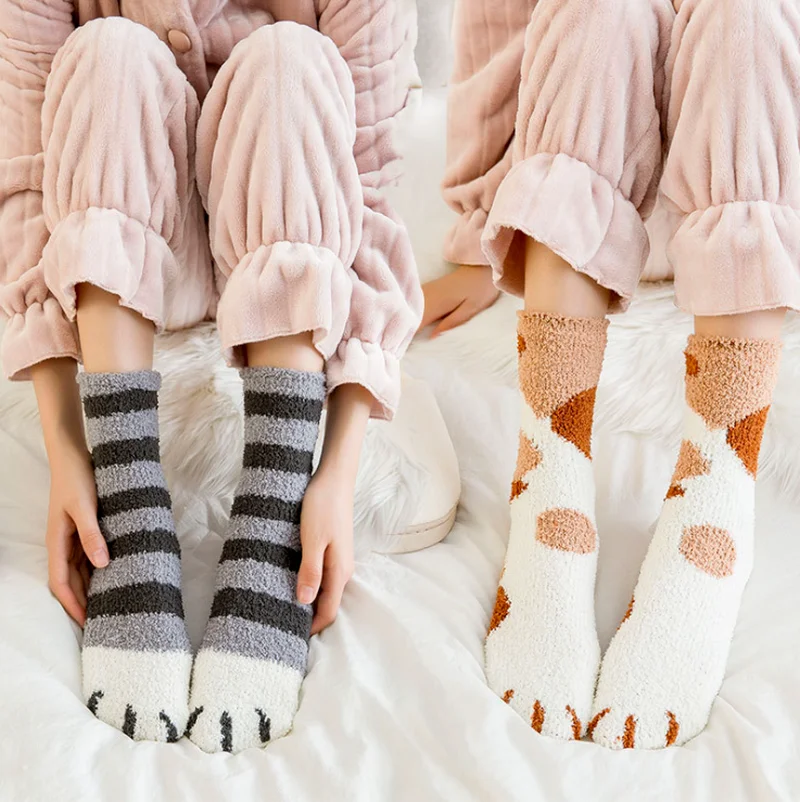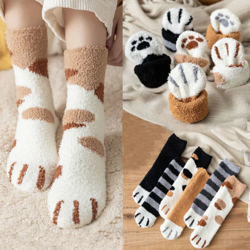 Забавная женская зимняя теплая пушистая утолщенная искусственная кошачья лапа мультяшная плюшевая женская домашняя напольная носка для сна