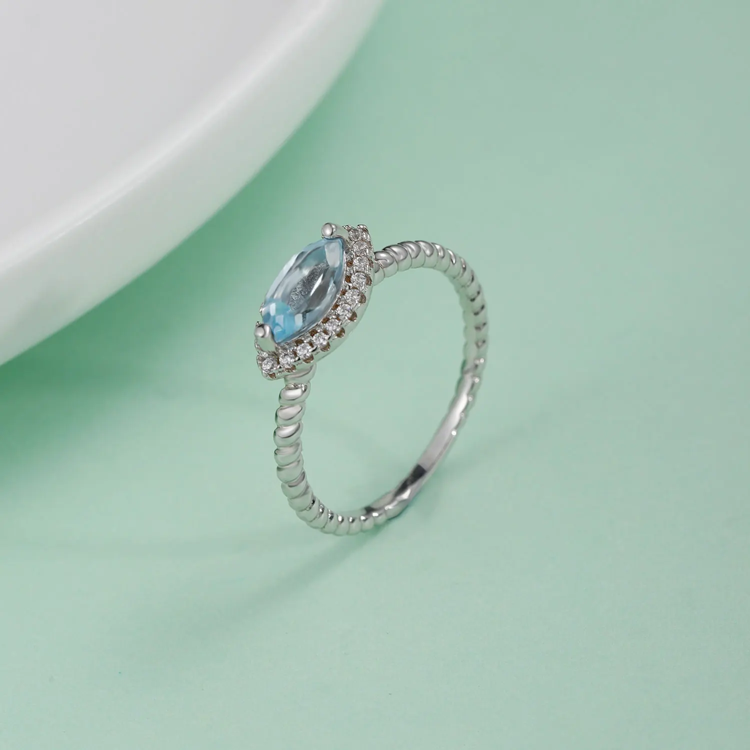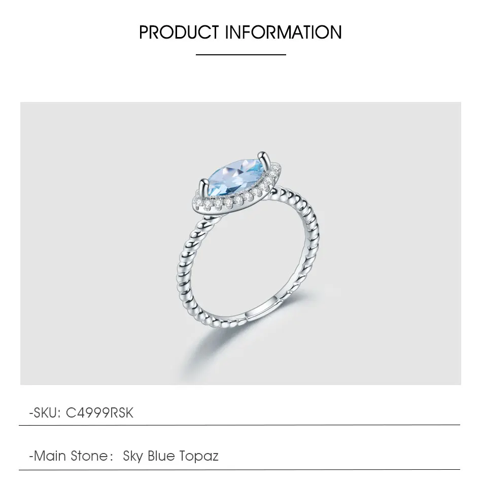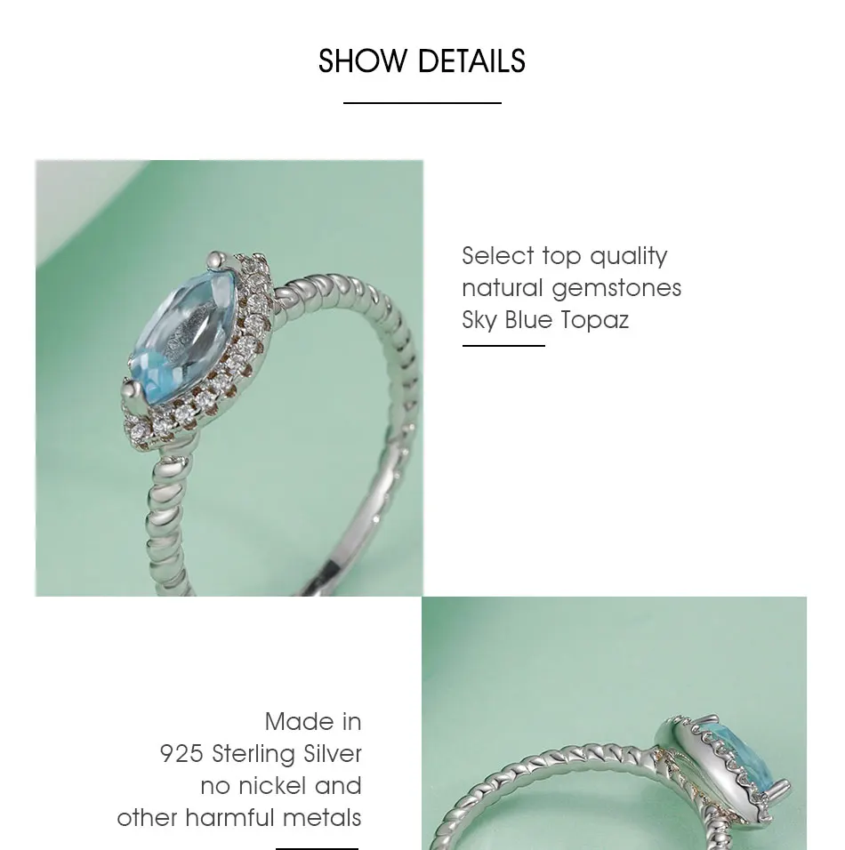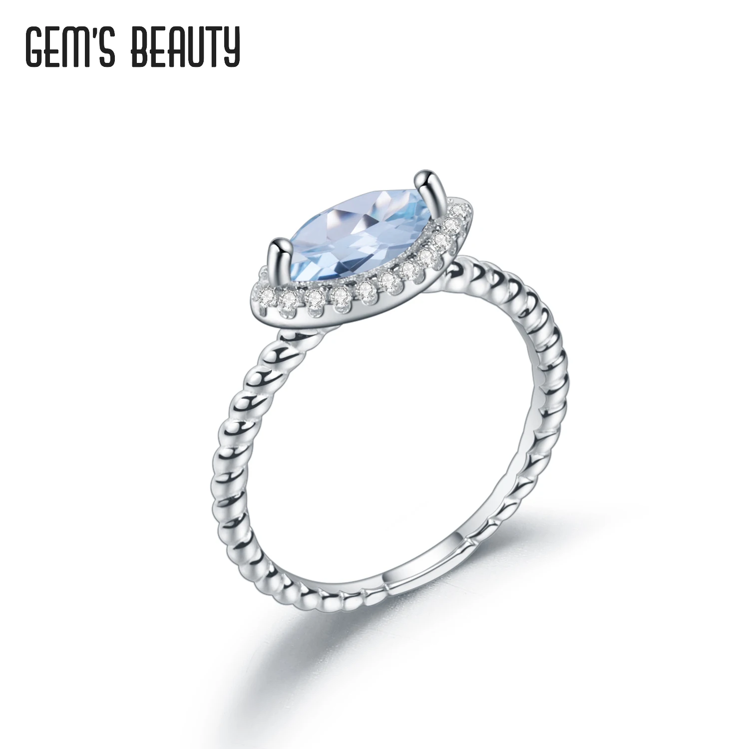 Красота драгоценного камня, искусственное серебряное кольцо с бисером для женщин, Изящные Ювелирные изделия с огранкой маркиза, натуральный небесно-голубой топаз