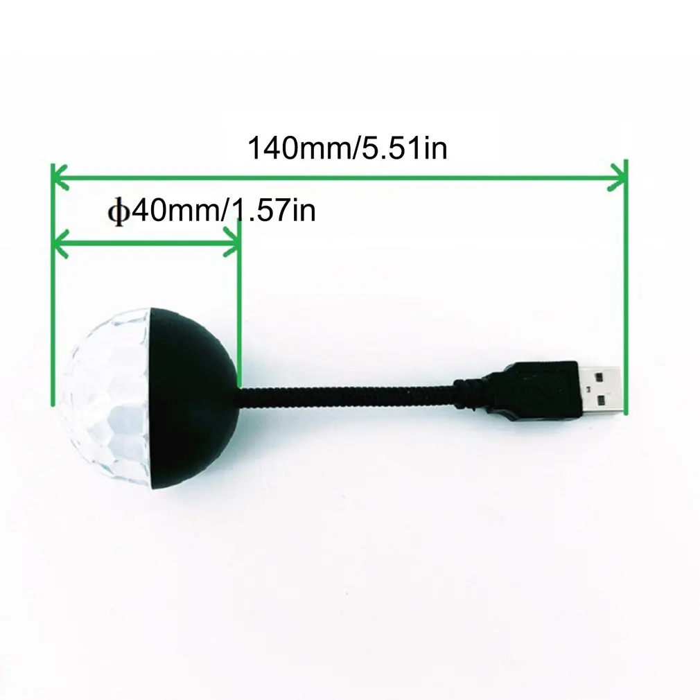 Вращающийся Диско-Шар с USB-разъемом для вечеринки, разноцветный светодиодный сцсветильник ильник с активацией звуком, освещение для диджея, вечеринки, автомобиля, бара, клуба