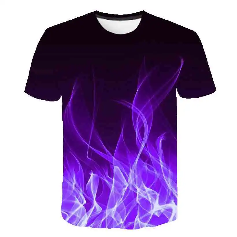 Футболка для мальчиков и девочек 4-14 лет, модная рубашка с 3D-принтом пламени, топы с короткими рукавами для детей, летняя одежда