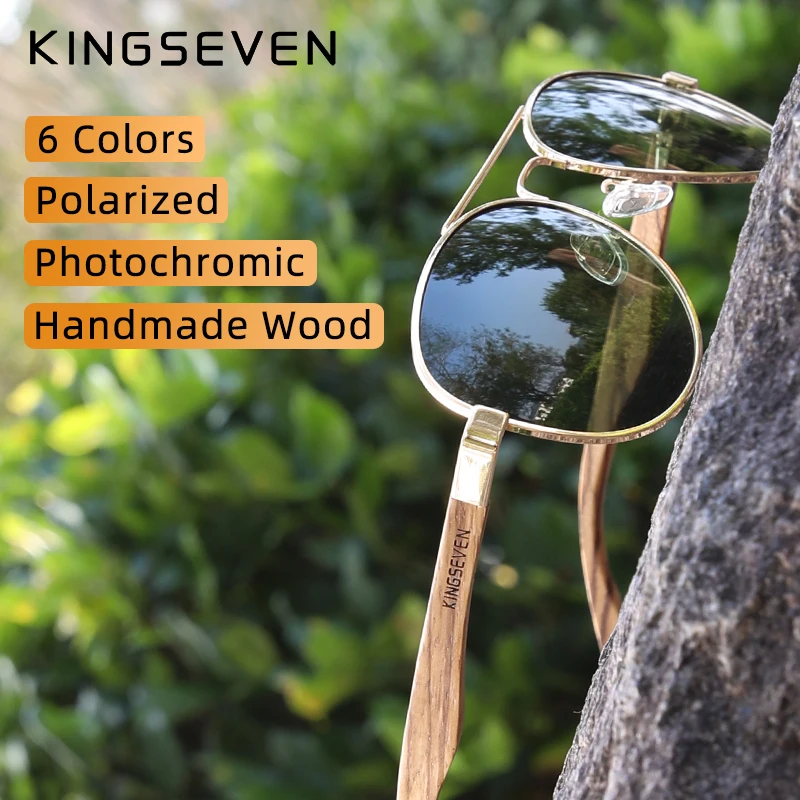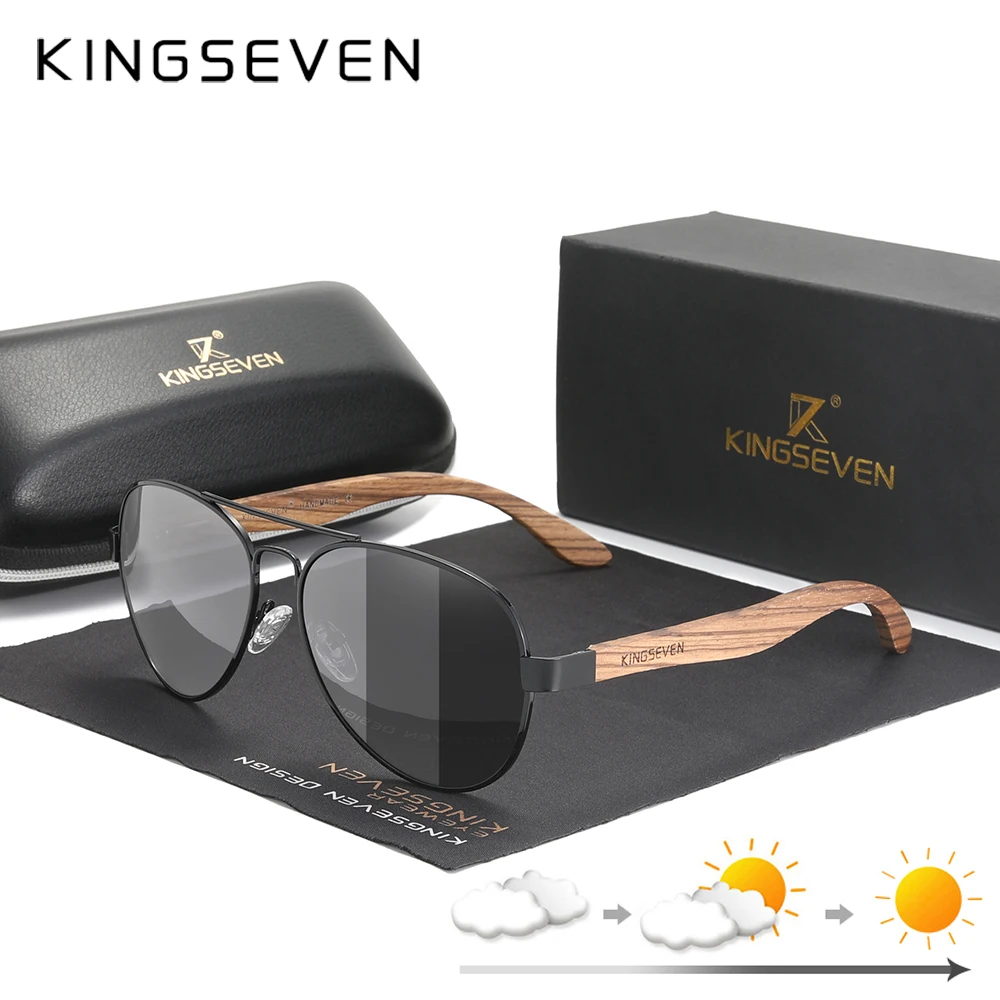 KINGSEVEN, новинка, фотохромные солнцезащитные очки для пилота, Мужские поляризационные солнцезащитные очки UV400, модные зеркальные деревянные солнцезащитные очки для вождения