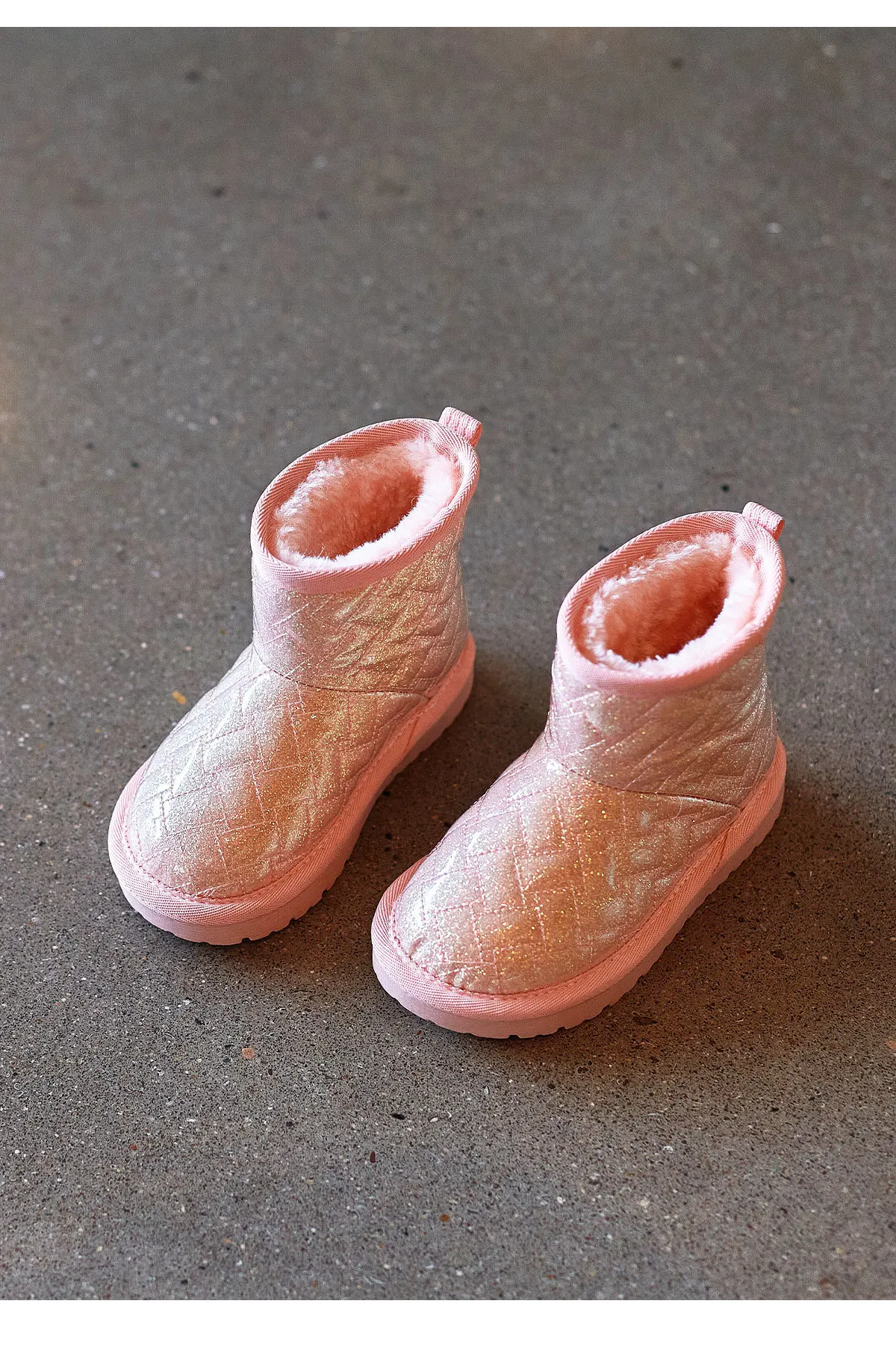 Новые зимние детские ботинки; Шикарные ботильоны для маленьких девочек; Детские теплые кожаные ботинки; Мягкие модные ботинки; Брендовая обувь принцессы розового цвета
