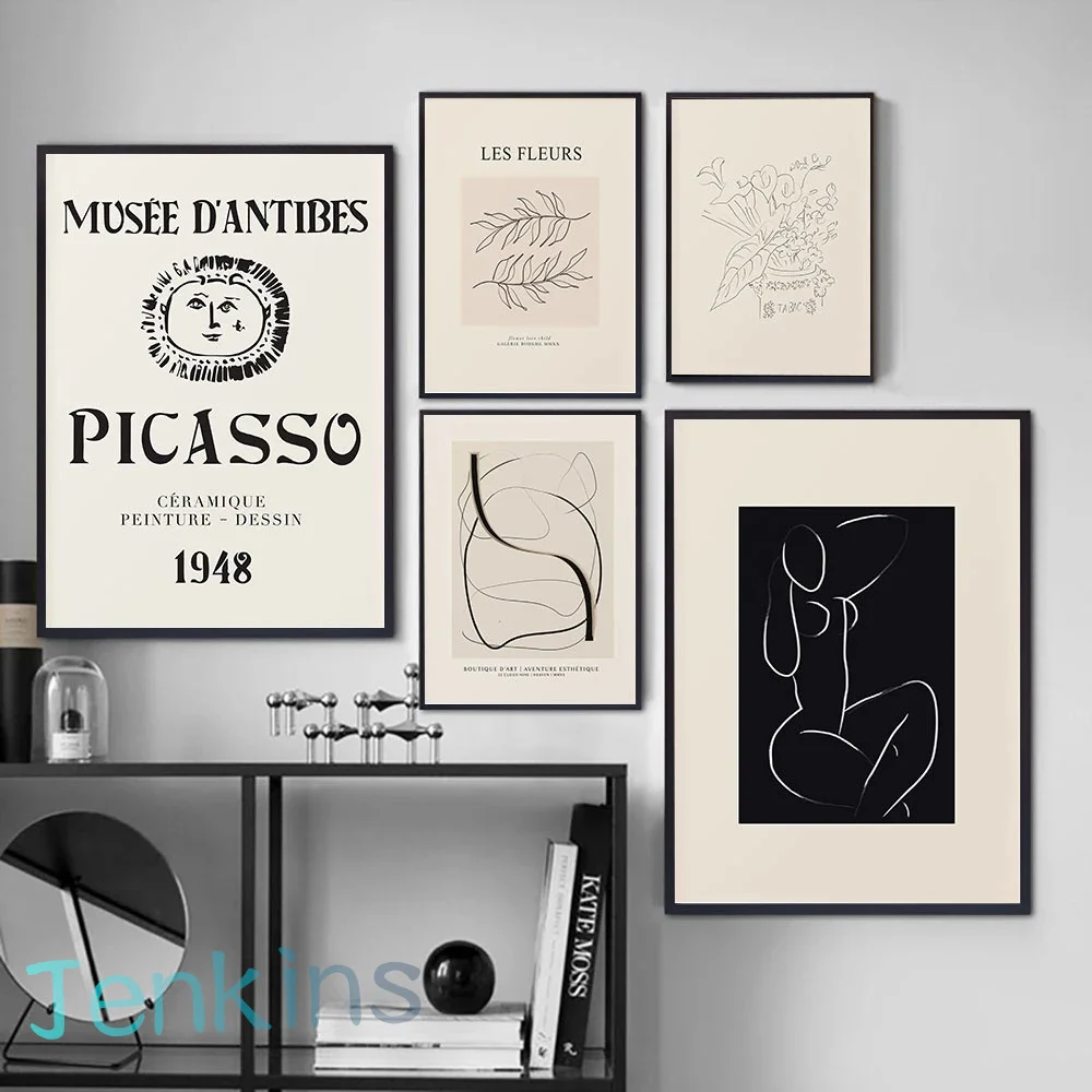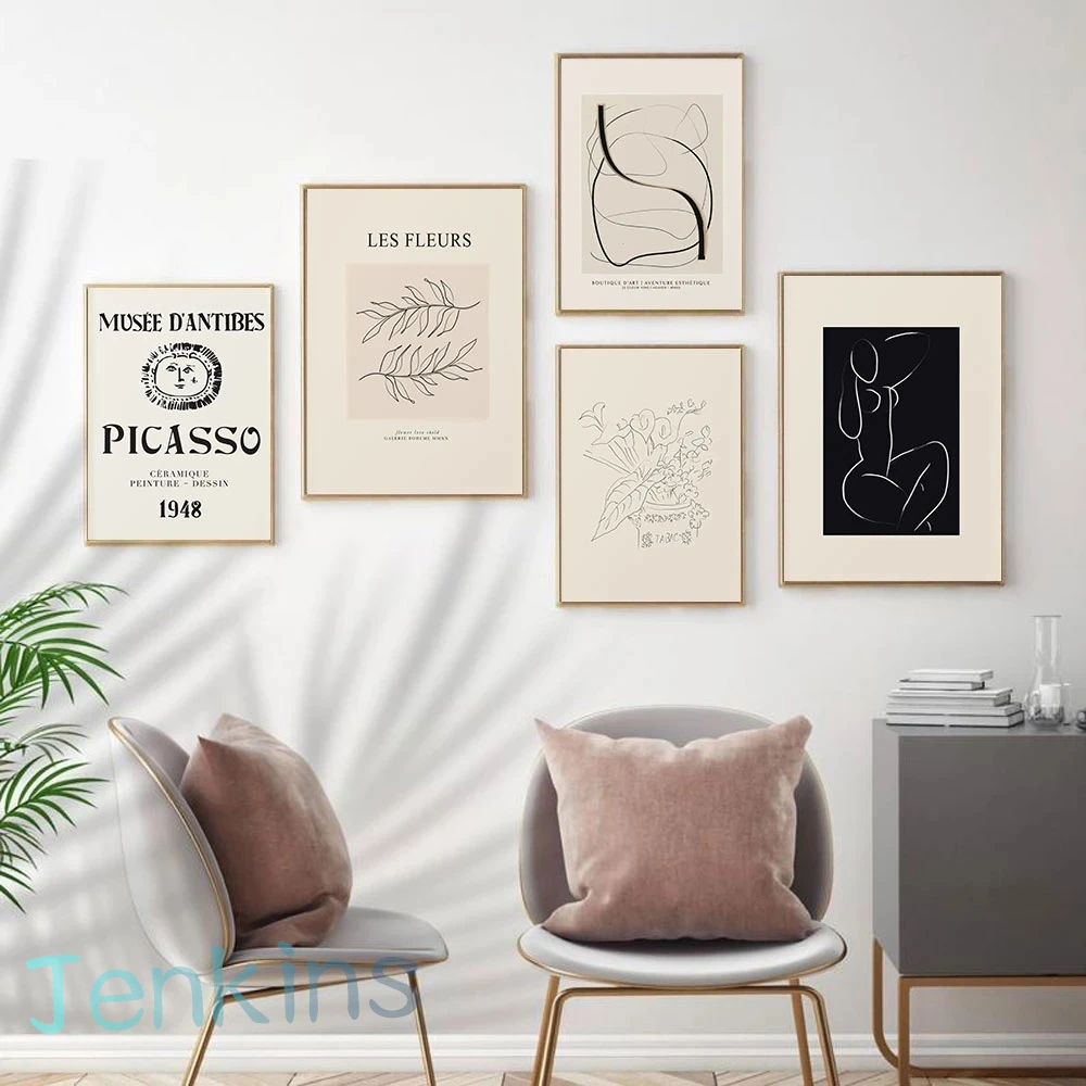 Абстрактный постер галереи Пикассо, холст, живопись, нейтральная линия, настенный художественный принт, современный минимализм для гостиной, украшение для дома