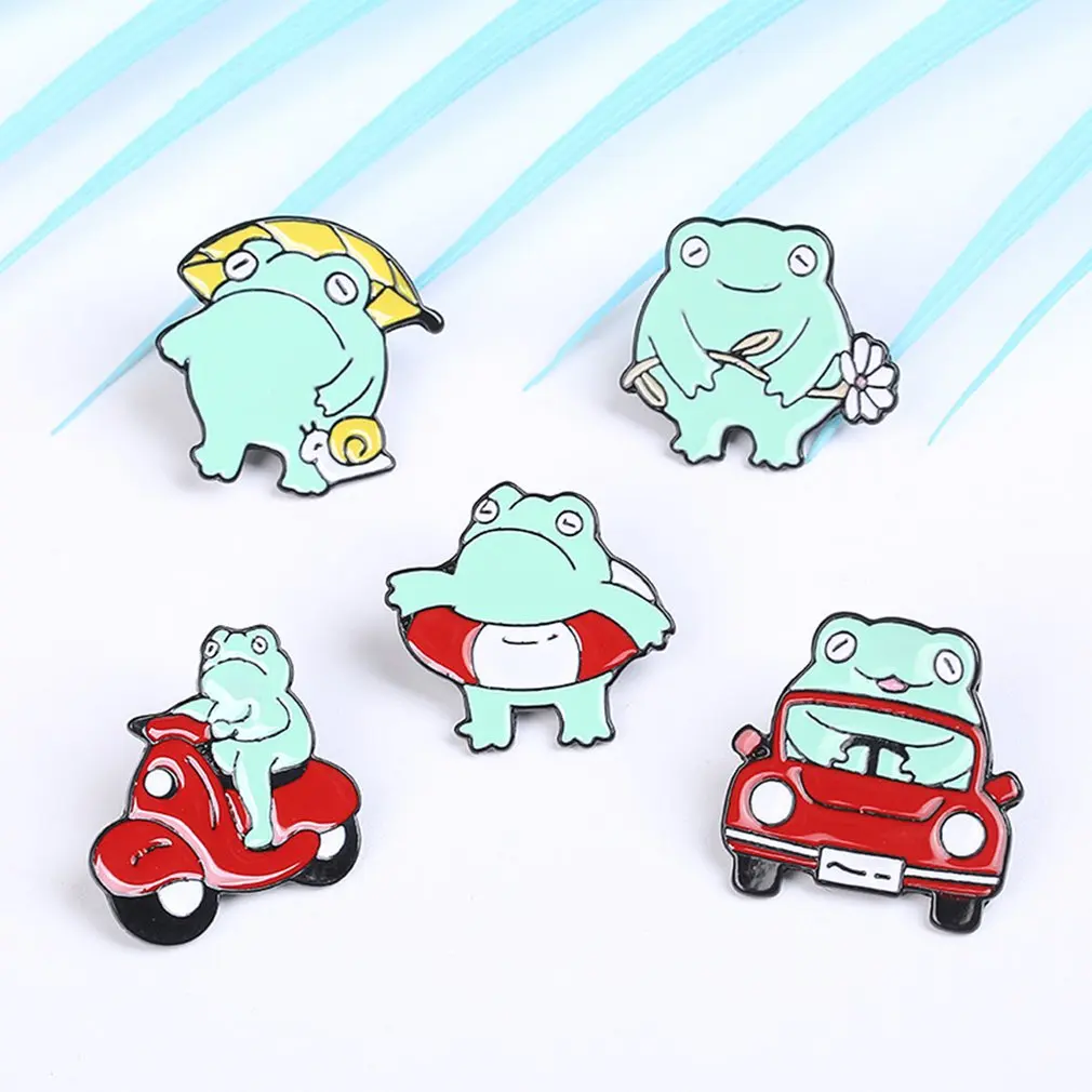 Забавная Броши лягушка зеленая эмалированная булавка в форме животного булавка для лацкана в сумке металлический значок в виде жеста аниме брошь в подарок ювелирные изделия брошь Горячая Распродажа