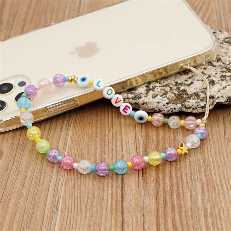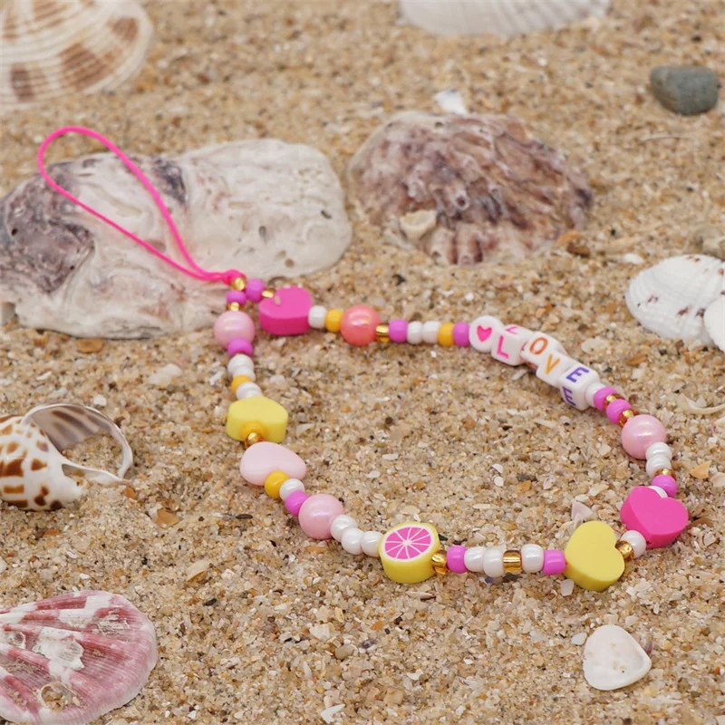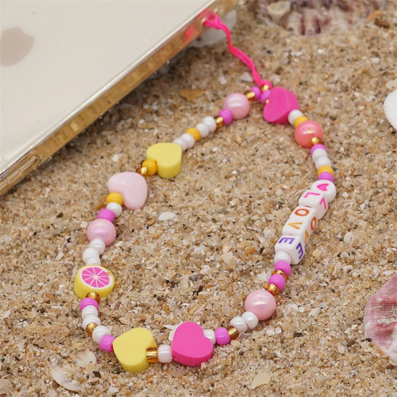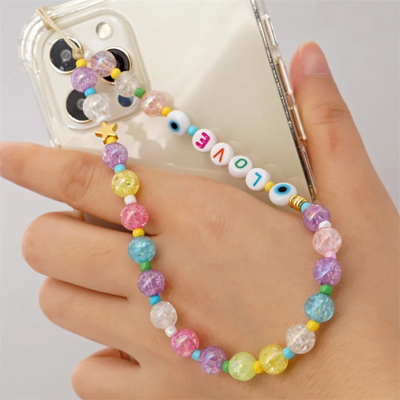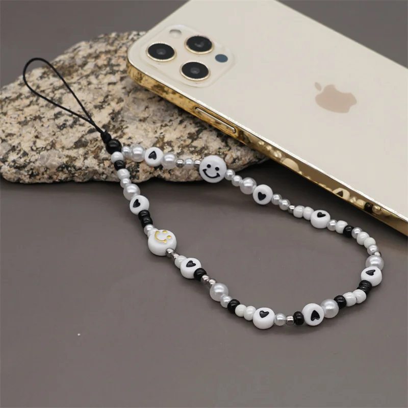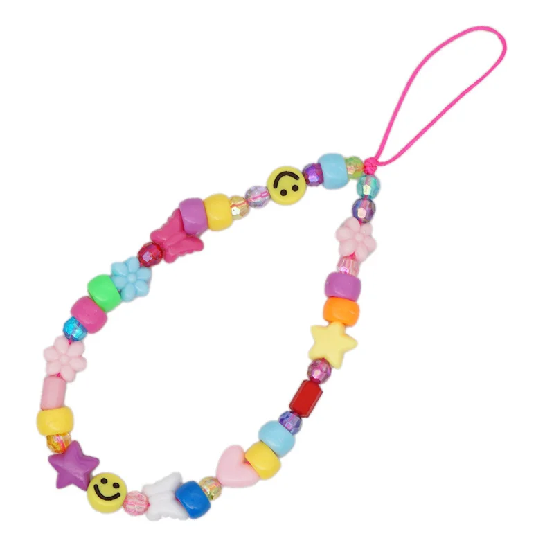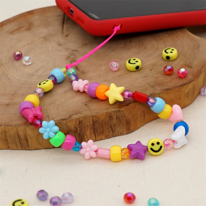 Новинка 2021, модная разноцветная цепочка со смайликами, искусственная цепь, акриловый шнур ручной работы с защитой от потери, шнур, шнур для подвешивания
