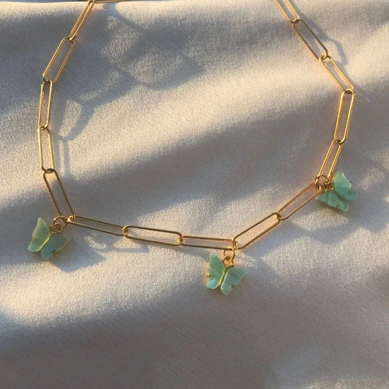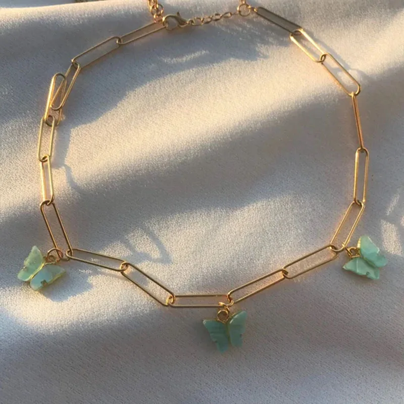 Новинка 2021, модное ожерелье с кулоном в виде милой бабочки, длинная цепочка золотого цвета, чокер до ключиц для женщин, эффектные ювелирные изделия для коктейвечерние