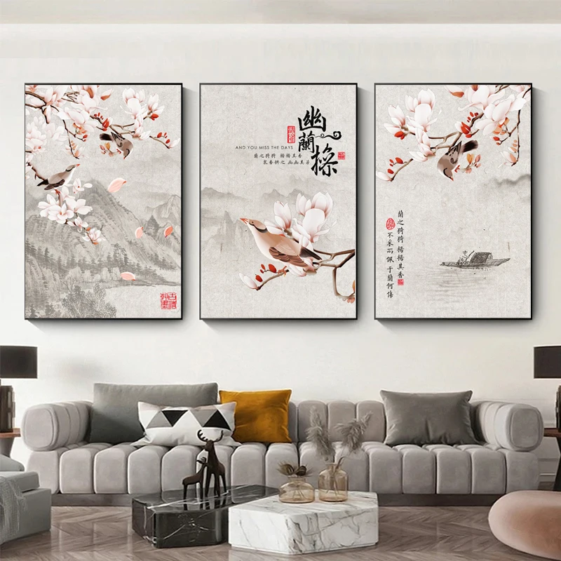 Китайский стиль Youlan, древняя поэзия, цветы, птицы, пейзаж, холст, искусство на стену, картина для гостиной, домашний декор icon star icon star icon star icon star icon star