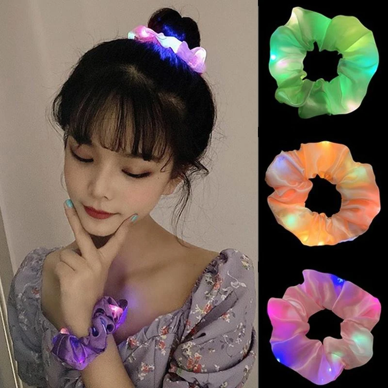 Рождественские светодиодсветильник светящиеся резинки для волос, набор ярких цветов, эластичные резинки для волос для женщин и девушек, креативные резинки для волос большого размера на Хэллоуин