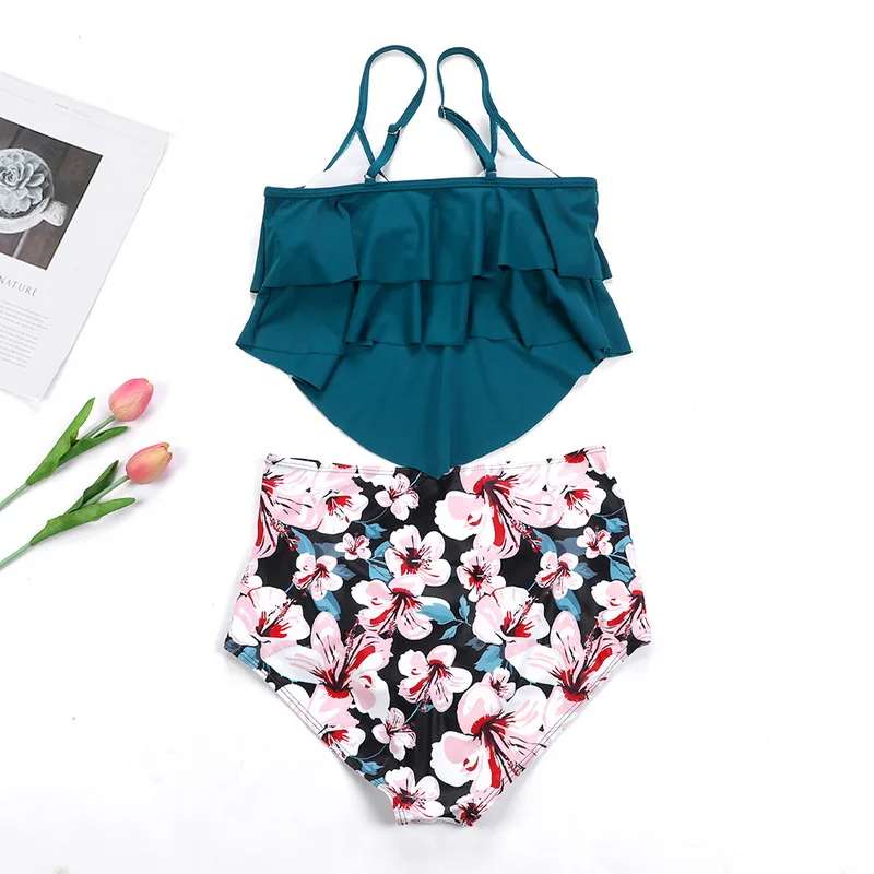 Купальник для женщин, Раздельный топ с двойным воланом и высокой та...
