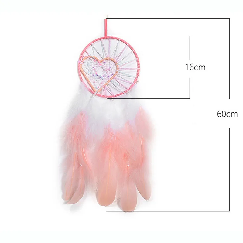 Ловец снов в форме сердца ручной работы с перьями, искусственное украшение, розовый Ловец снов, декор для комнаты