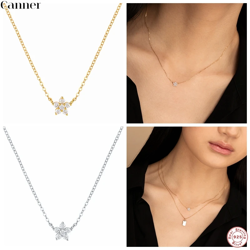 Женское серебряное ожерелье CANNER, 100% 925 пробы плата Де Ли, ожерелье для ключицы, ювелирное изделие, цепочка Снежинка, ожерелье