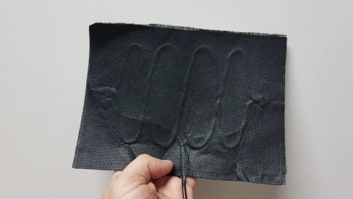 Порезанный неакуратно. В работе не проверял. термоелемент заламинирован между двумя пленками. так что установить в перчатки не выйдет
