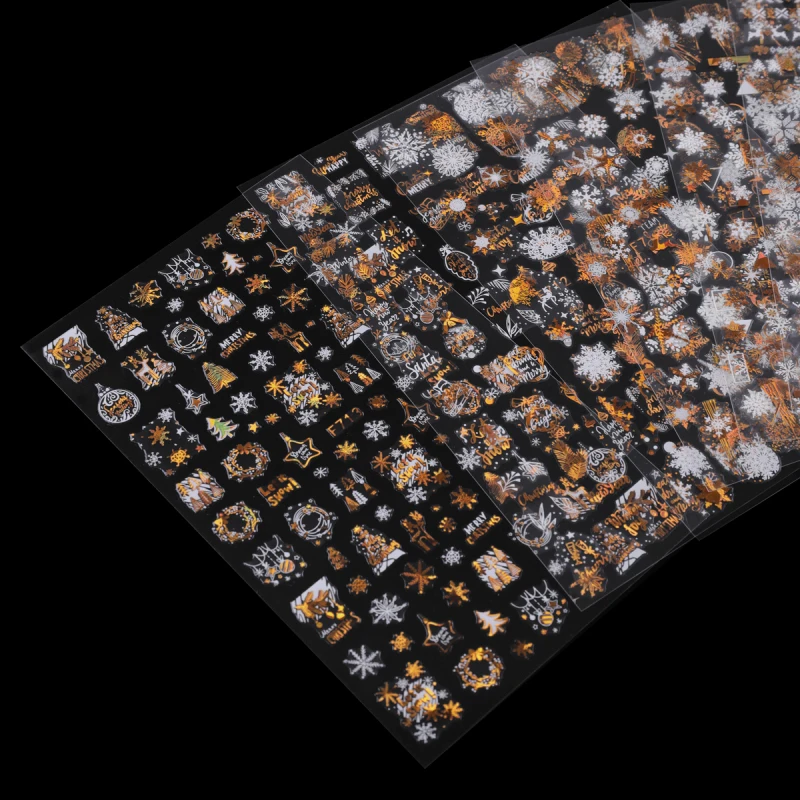 Наклейка для ногтей 3D зимняя Снежинка Лось лазерная Золотая Рождественская наклейка для ногтей с английскими буквами