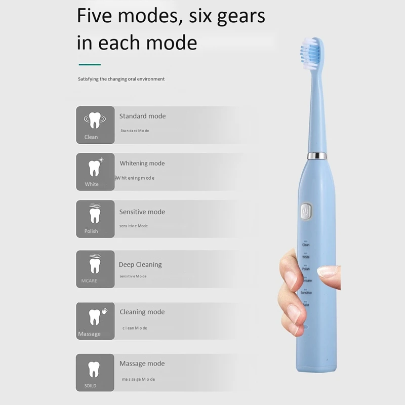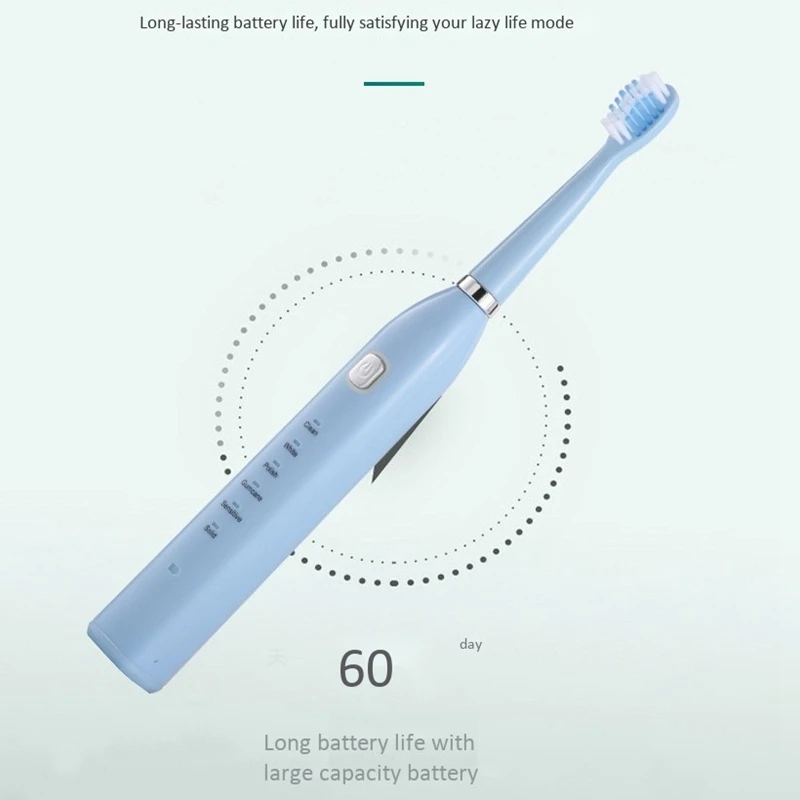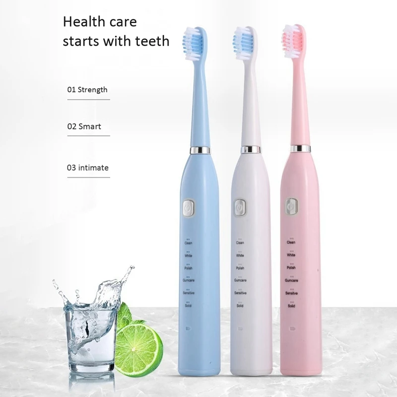 Функция памяти модели: после каждого использования зубная щетка запомнит выбранный режимДве минуты смарт-таймер с интервалом паузы напоминания каждые 30 секунд.Водонепроницаемый IPX7. Зарядка через USB,Легко и удобно использовать дома или в путешествиях.Размер: 22,5х2, 5 смМатериал: АБС-пластикЦвет: белый/синий/розовыйПосылка:1 x ручка электрической зубной щетки4 сменных головки1 х USB кабель для зарядкиТолько вышеуказанная посылка, другие товары не включены.Примечание: светильник и различные дисплеи могут привести к тому, что цвет товара на картинке немного отличается от реального. Допускается погрешность в измерениях +/- 1-3 см.