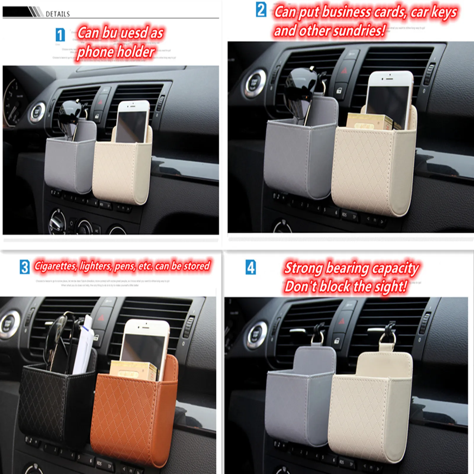 Автомобильная сумка для хранения приборной панели с вентиляционным отверстием аккуратный кожаный Органайзер коробка для очков держатель для телефона органайзер для хранения Авто чехол для спинки сиденья с крючком аксессуары для интерьера автомобиля