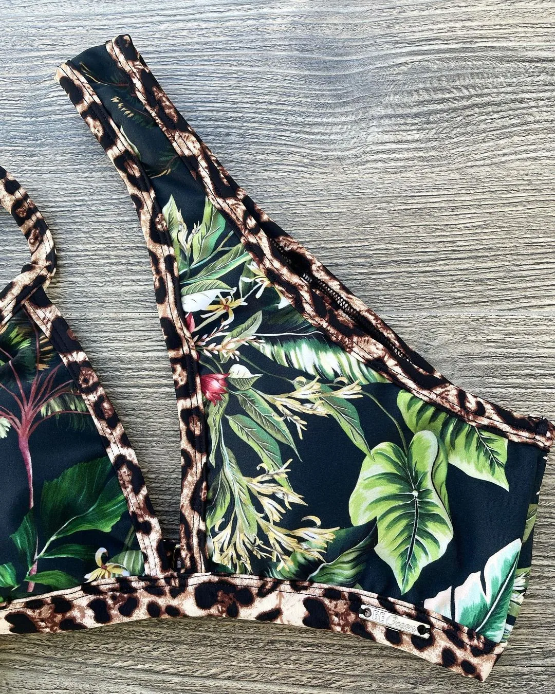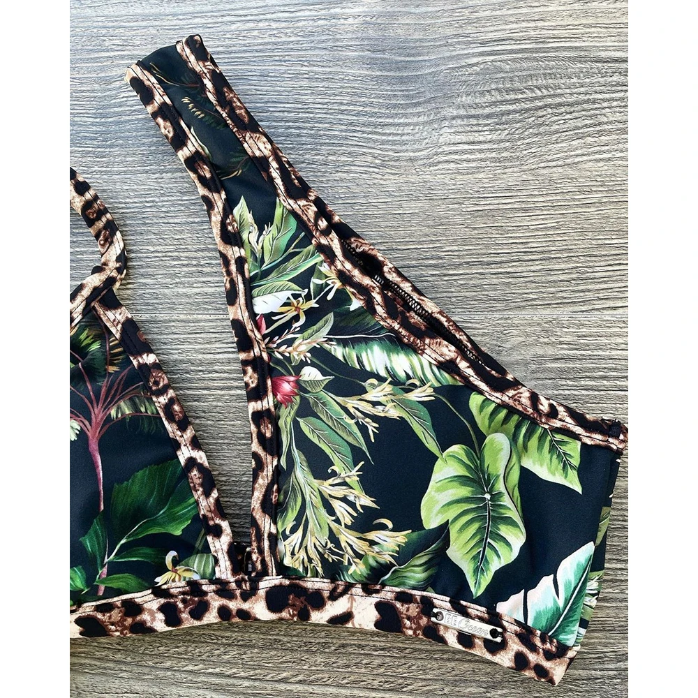 Сексуальные бикини с леопардовым принтом и листьями, женский купаль...
