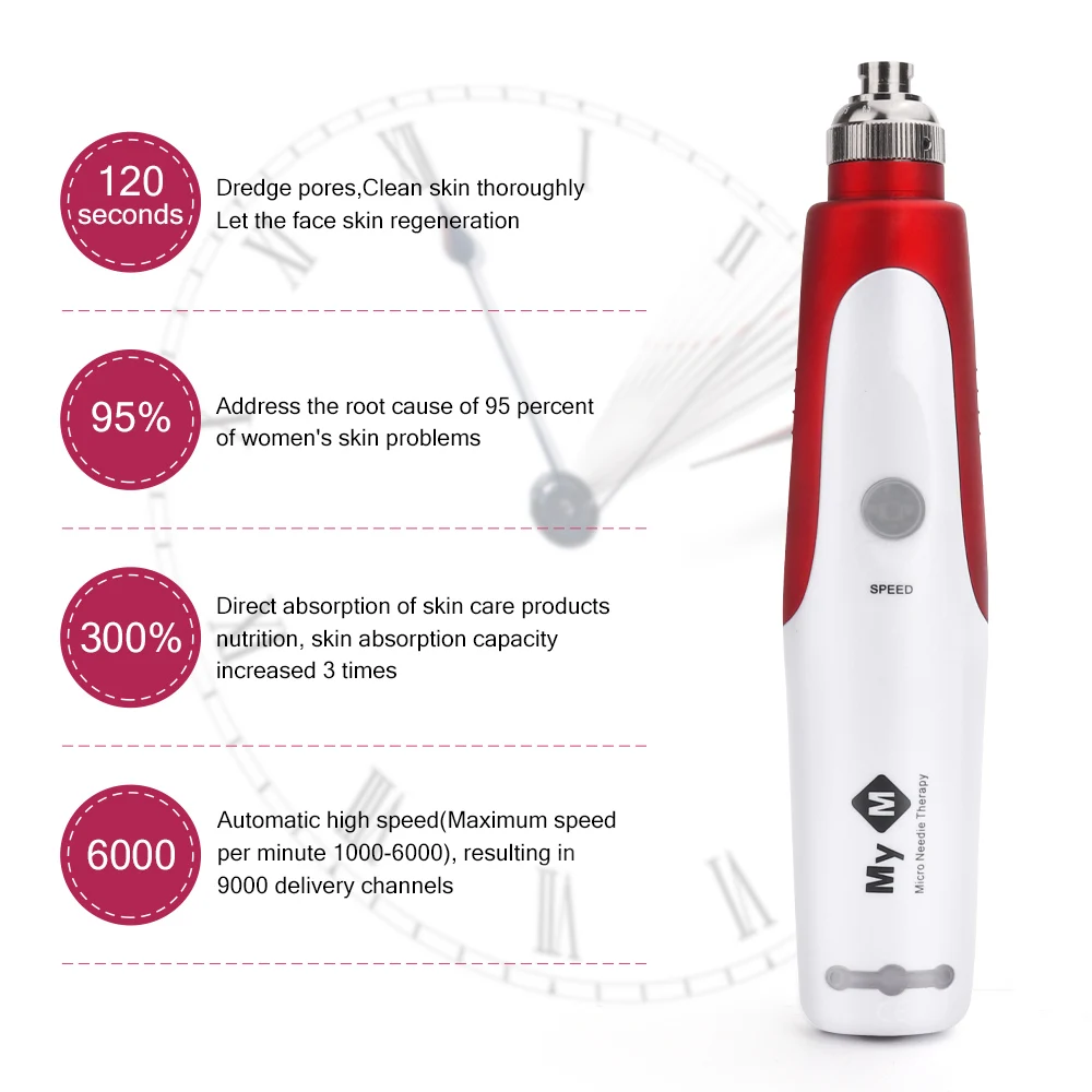 Ручка с микроиглами, электрическая Вибрирующая мезотерапия для лица, лечение морщин, Дерма-ручка с микроиглами, уход за кожей, косметическая машина