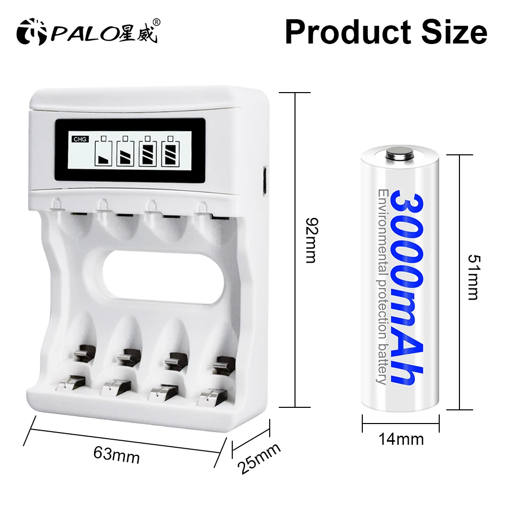 Аккумуляторная батарея PALO 1,2 в AA 3000 мАч Ni-MH AA, перезаряжаемые батареи с ЖК-дисплеем, умное зарядное устройство для игрушечного автомобиля