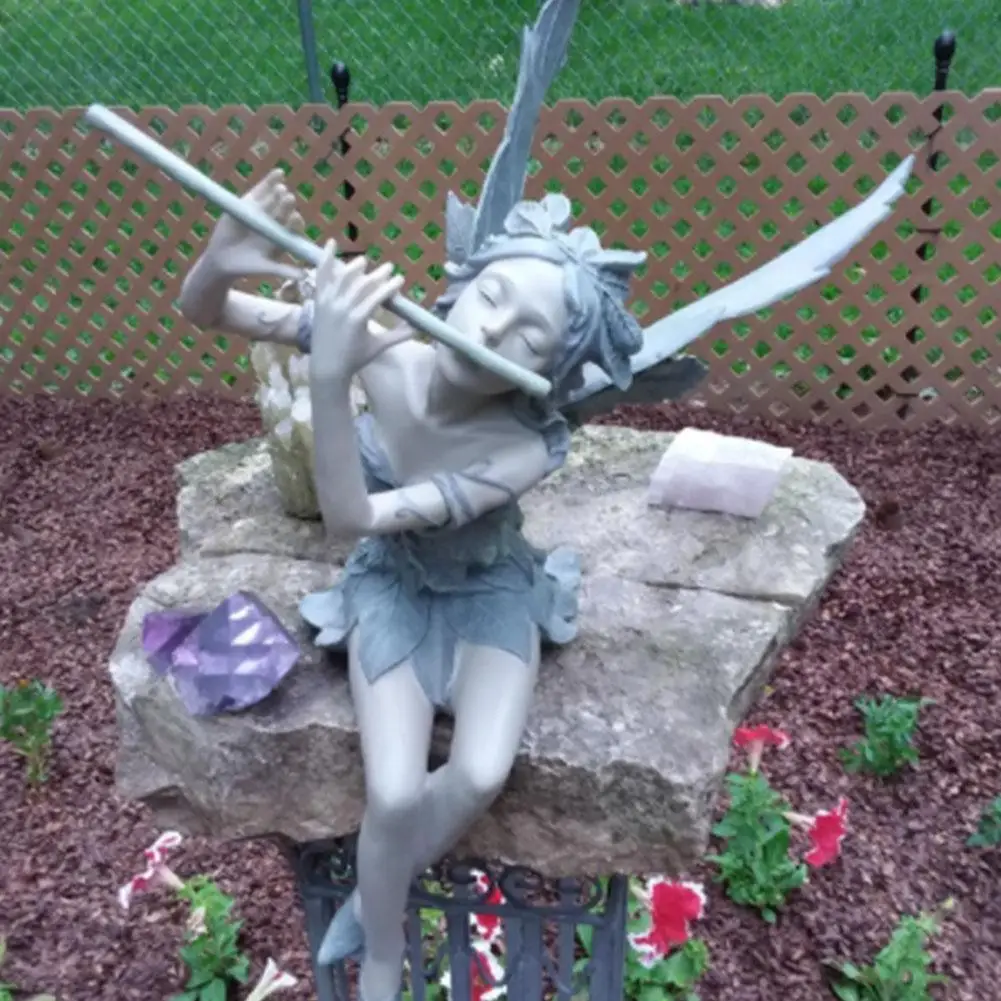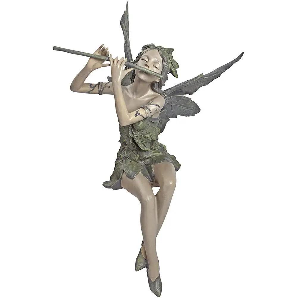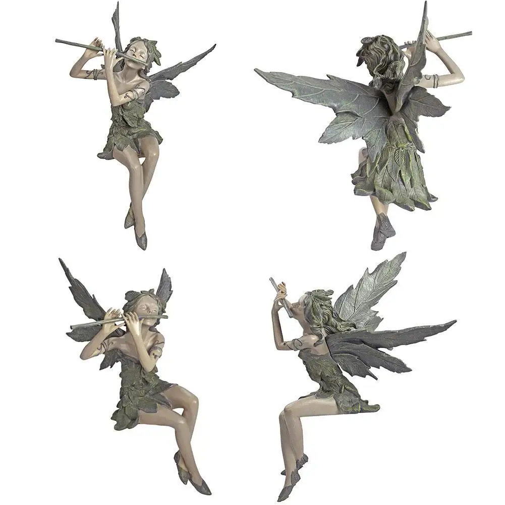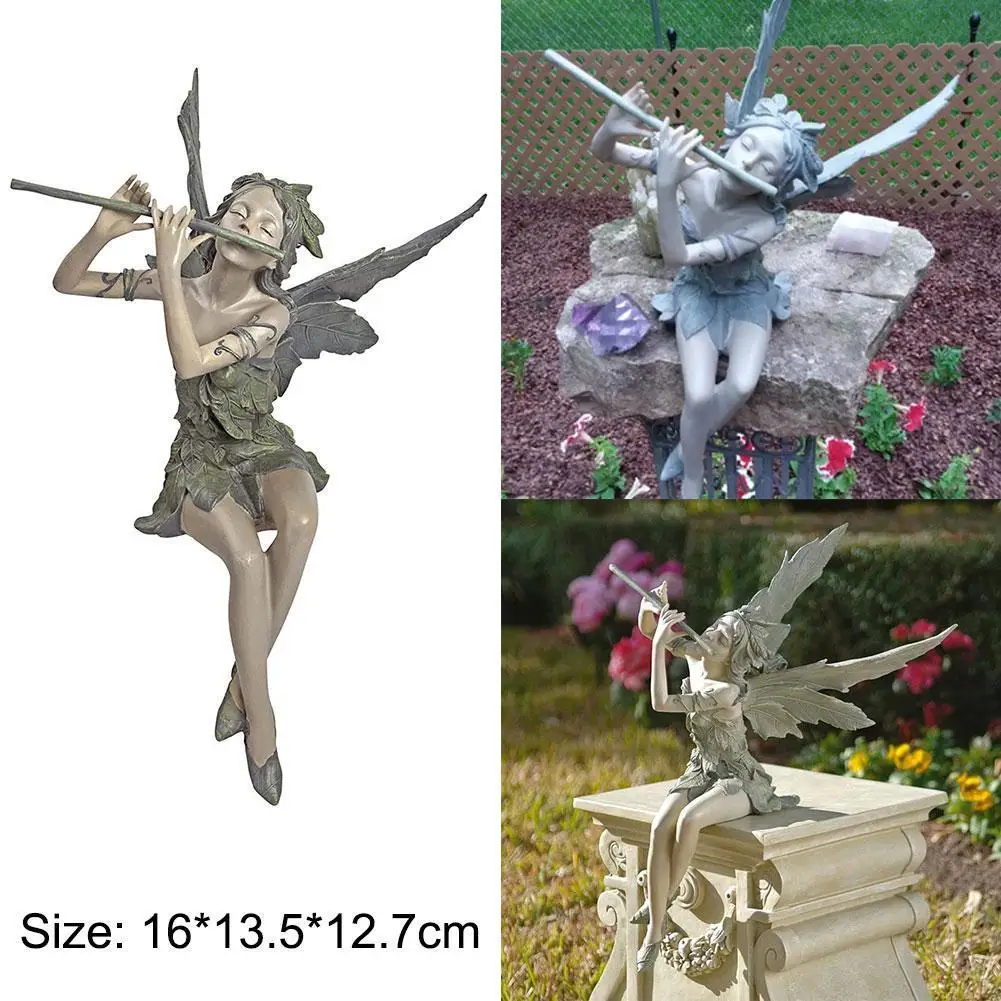 Статуя из смолы, сидящая фея, статуя флейты, эльфа, скульптура ангела, садовая сказочная фигурка, украшение для горшечных растений