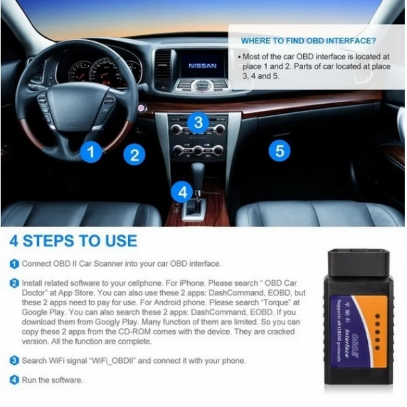Wi-Fi сканер ELM327, беспроводной автомобильный адаптер OBD2, Wi-Fi сканер, сканер, инструмент для сканирования для IOS и Android