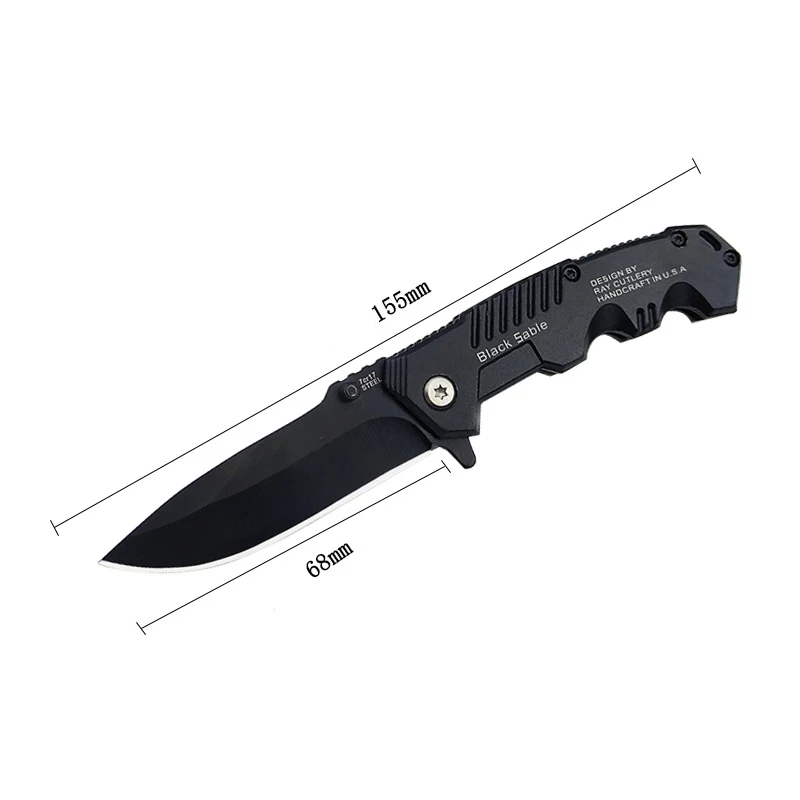 Характеристики:Тип изделия: складной ножМатериал: нержавеющая сталь + алюминийЦвет: черныйКоличество: 1 шт.Размер изделия: 200*28*2,8 мм/7,86*1,10*0,11 дюймов (Д * Ш * В) (большой); 155*22*2,5 мм/6,09*0,86*0,1 дюйма (маленький)Вес: 136g/4,8 oz (большой размер); 65 г/2,29 oz (малый размер)Посылка:1 * складной нож