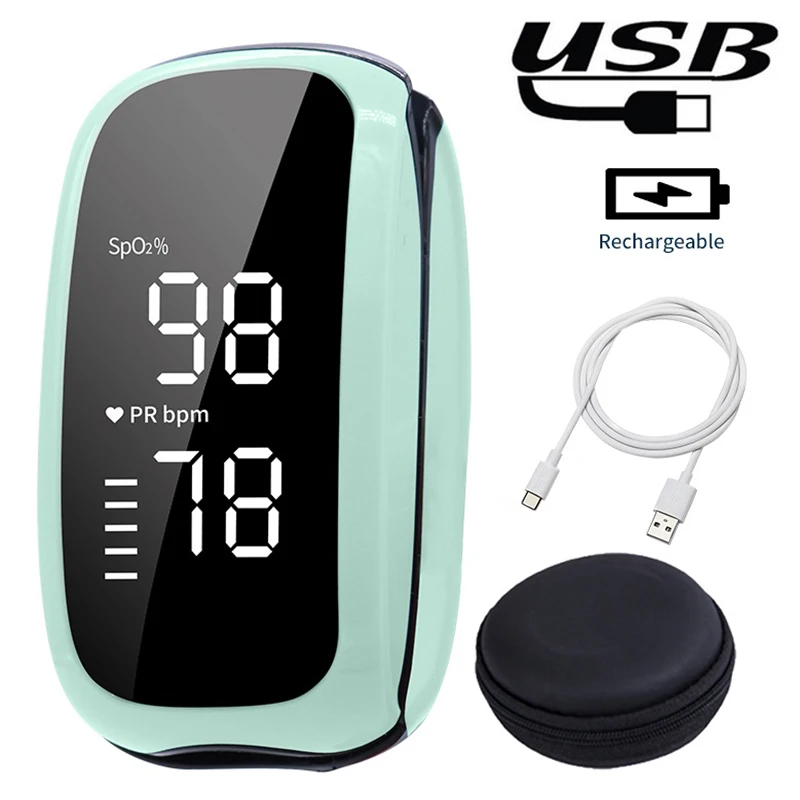 Пульсоксиметр Пальчиковый перезаряжаемый с зарядкой от USB, SpO2 PR
