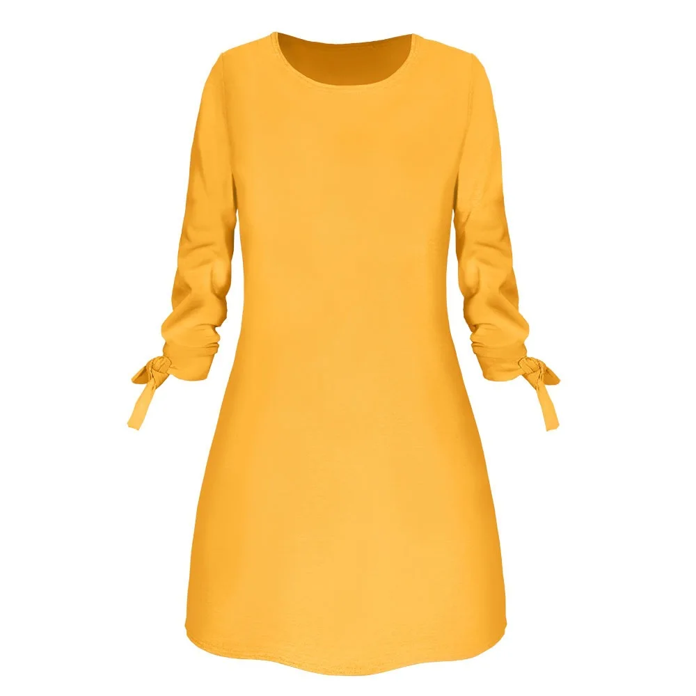 Платье женское однотонное с круглым вырезом, Модная элегантная свободная повседневная одежда, в стиле Харадзюку, весна-осень