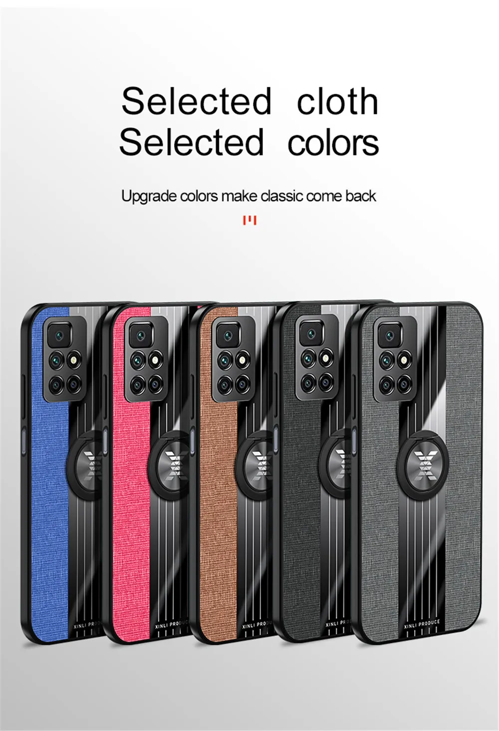 Чехол для Redmi 10, тканевый защитный чехол из ткани для Xiaomi Redmi10, Xiomi Redme Redmy 10, автомобильная магнитная подставка с кольцом, задняя крышка телефона