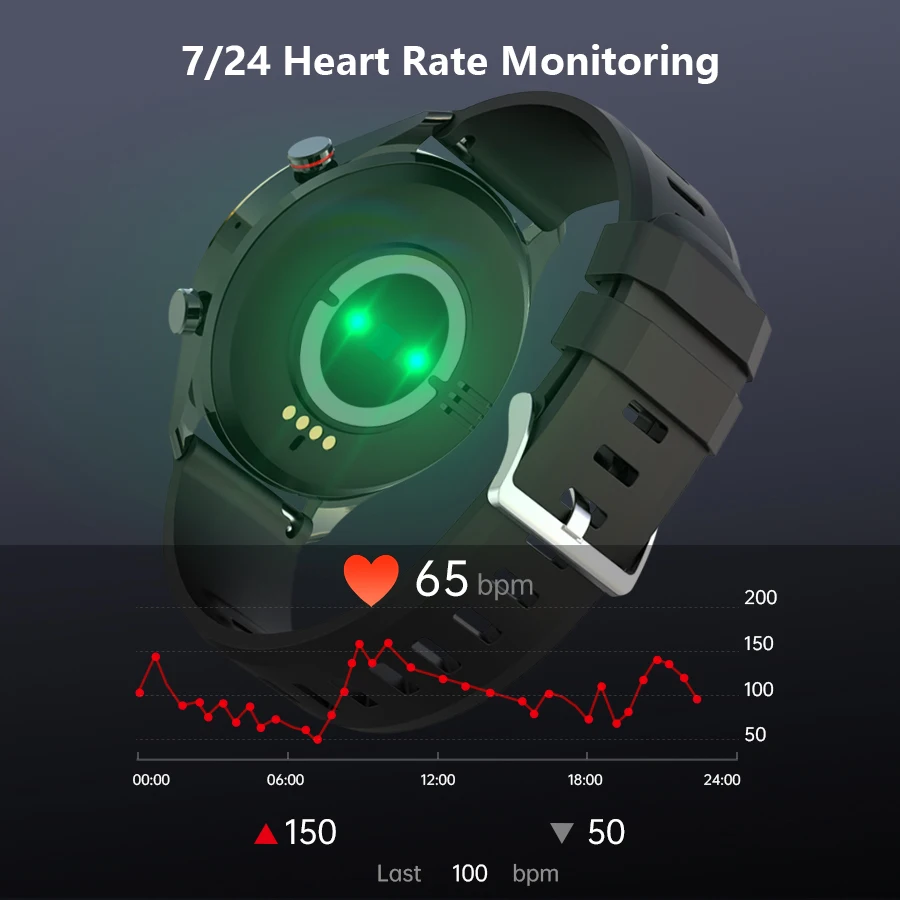Отслеживание частоты сердечных сокращений и артериального давления автоматически и эффективно в течение всего дня. Дайте вам непрерывную частоту сердечных сокращений, когда вы тренируетесь, помогая регулировать интенсивность ваших тренировок. Обнаружение аномальных сердечных сокращений и оповещение.